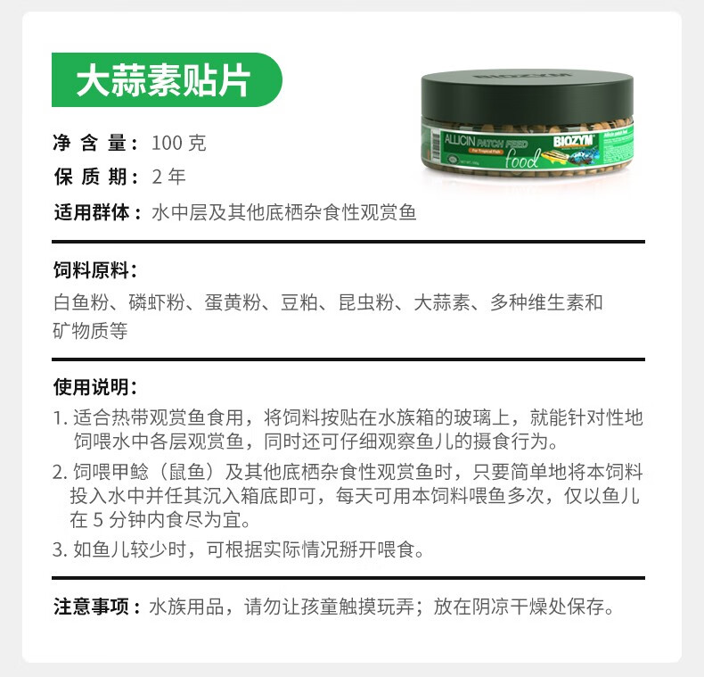 百因美(BIOZYM)小型鱼贴片鱼食观赏鱼孔雀鱼热带鱼鱼饲料斗鱼神仙鱼灯科鱼金鱼粮 丰年虾贴片110g