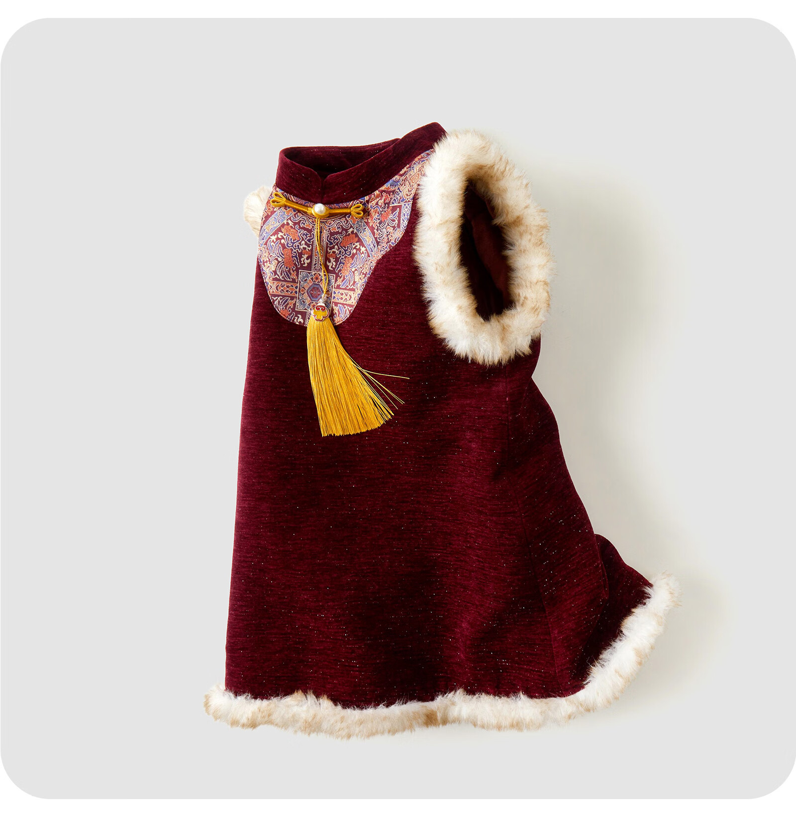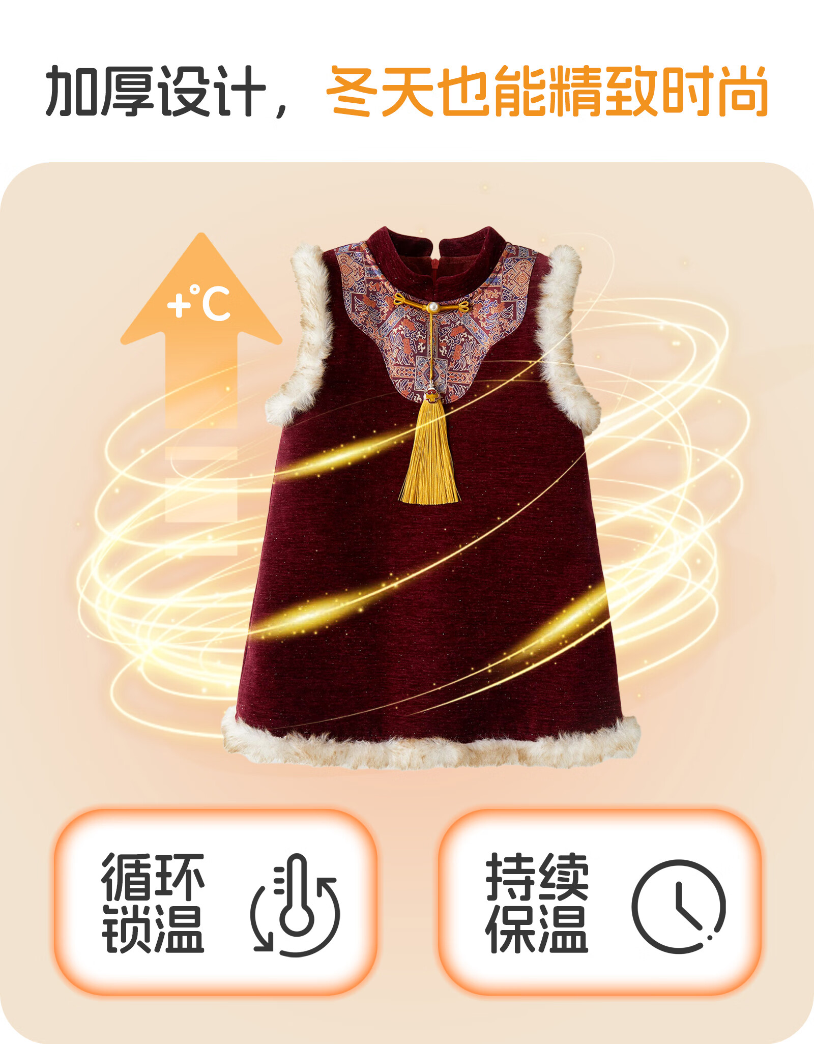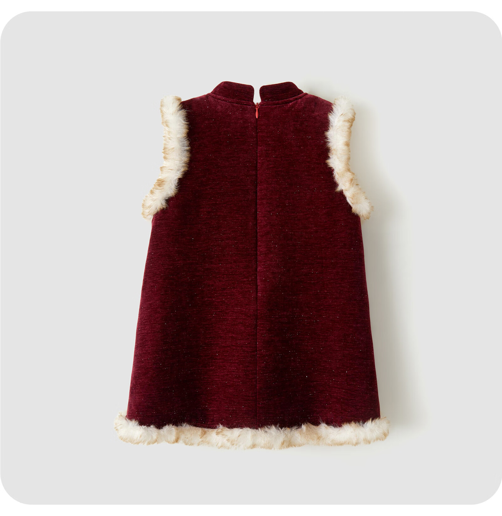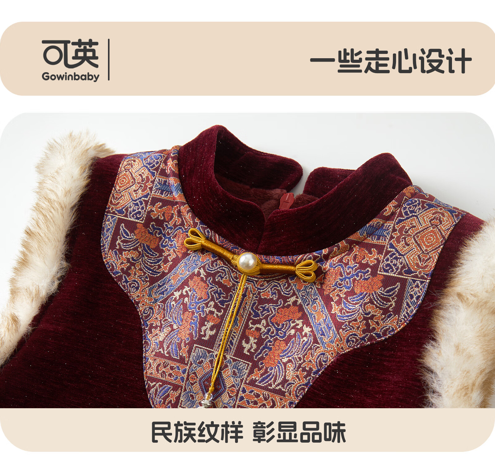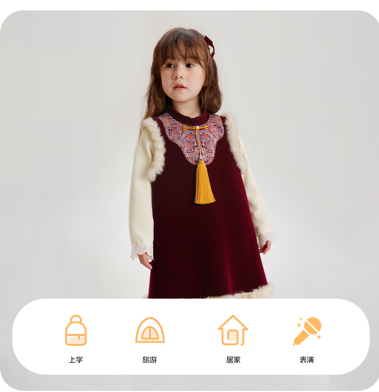 可英女童连衣裙民族风保暖2025秋冬女宝甜美公主裙女孩红色加绒背心裙 酒红色 110 (适合身高100cm-110cm)
