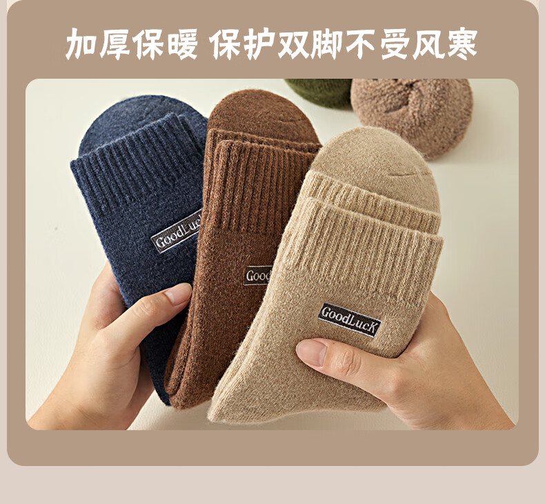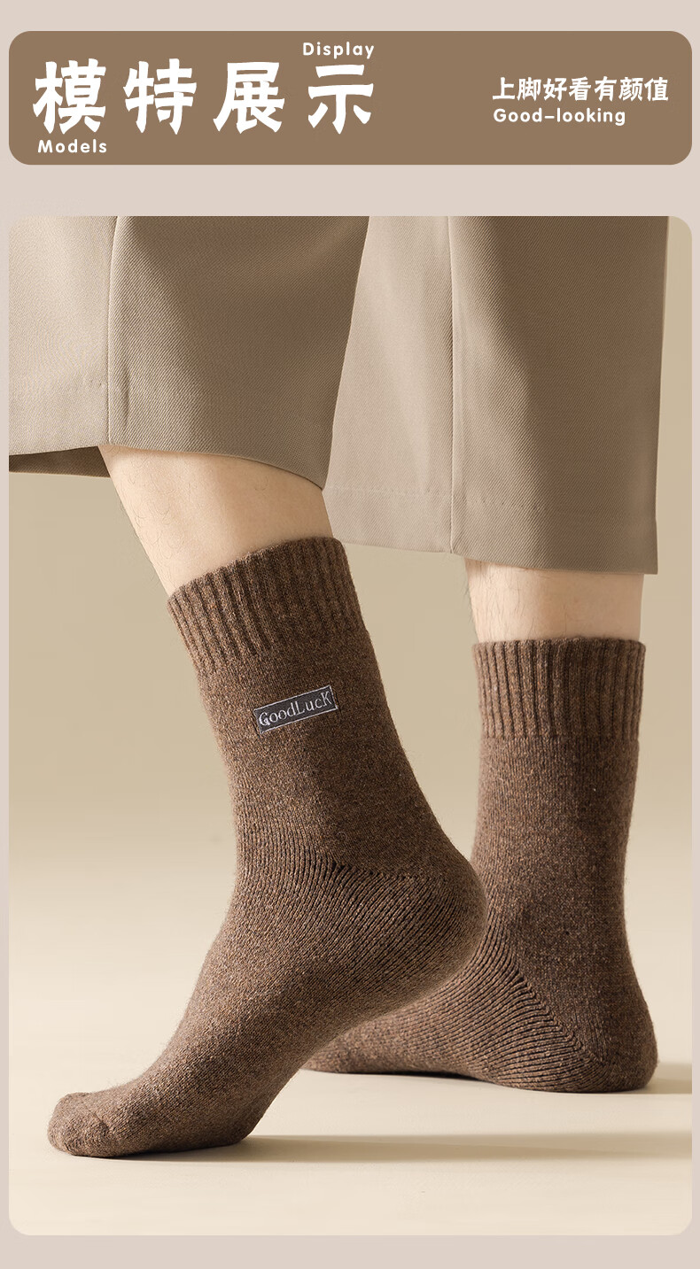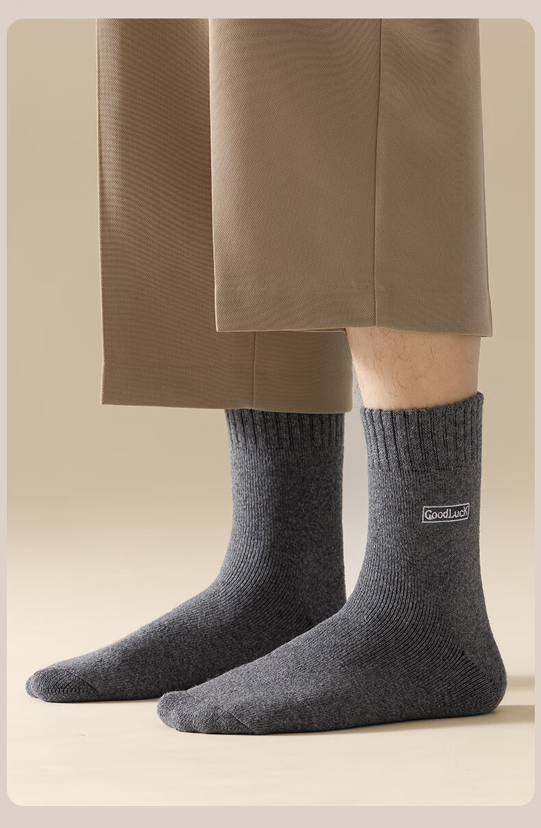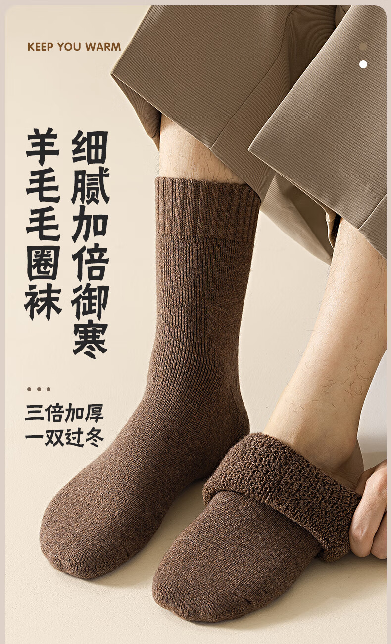 俞兆林4双厚羊毛袜子男士加厚加绒秋冬季保暖毛圈袜中筒东北长袜雪地袜
