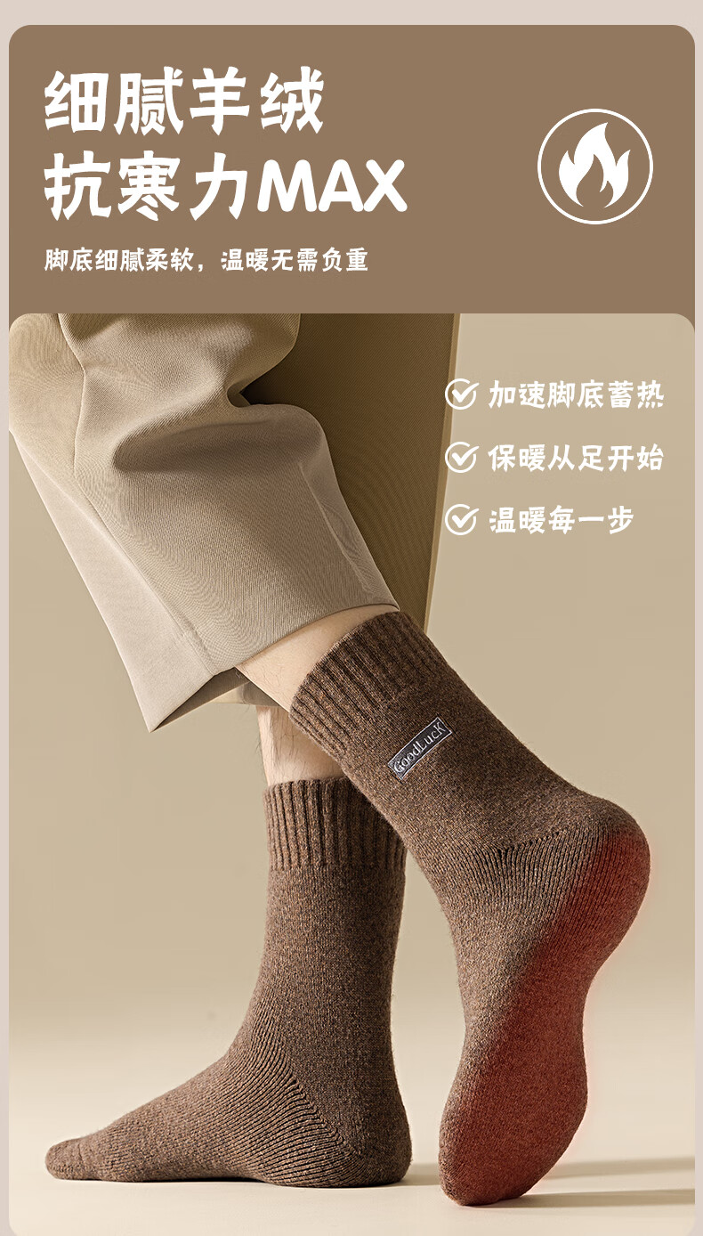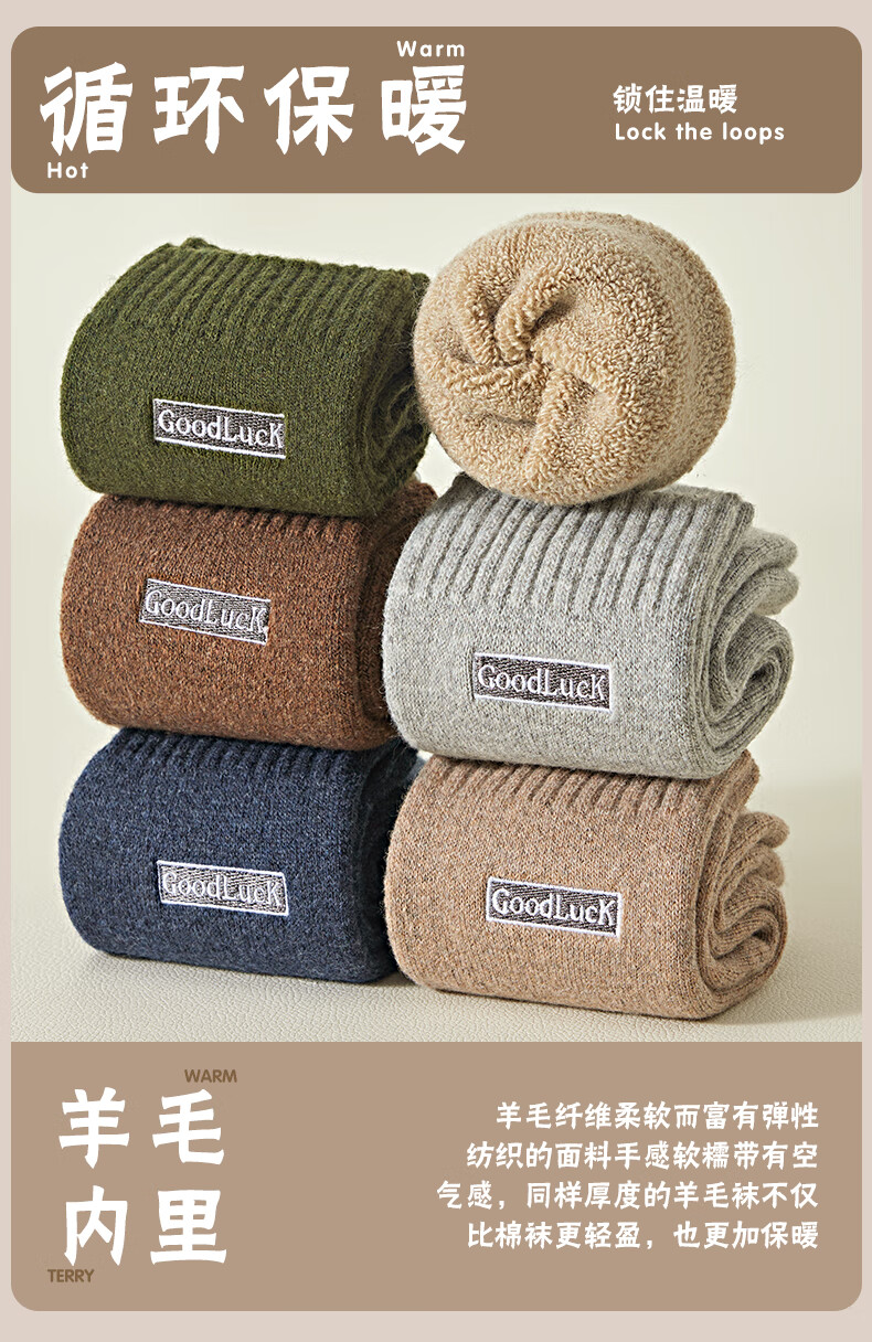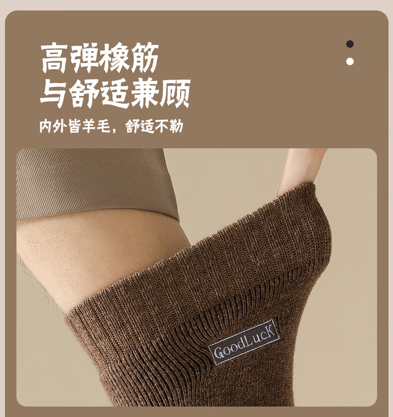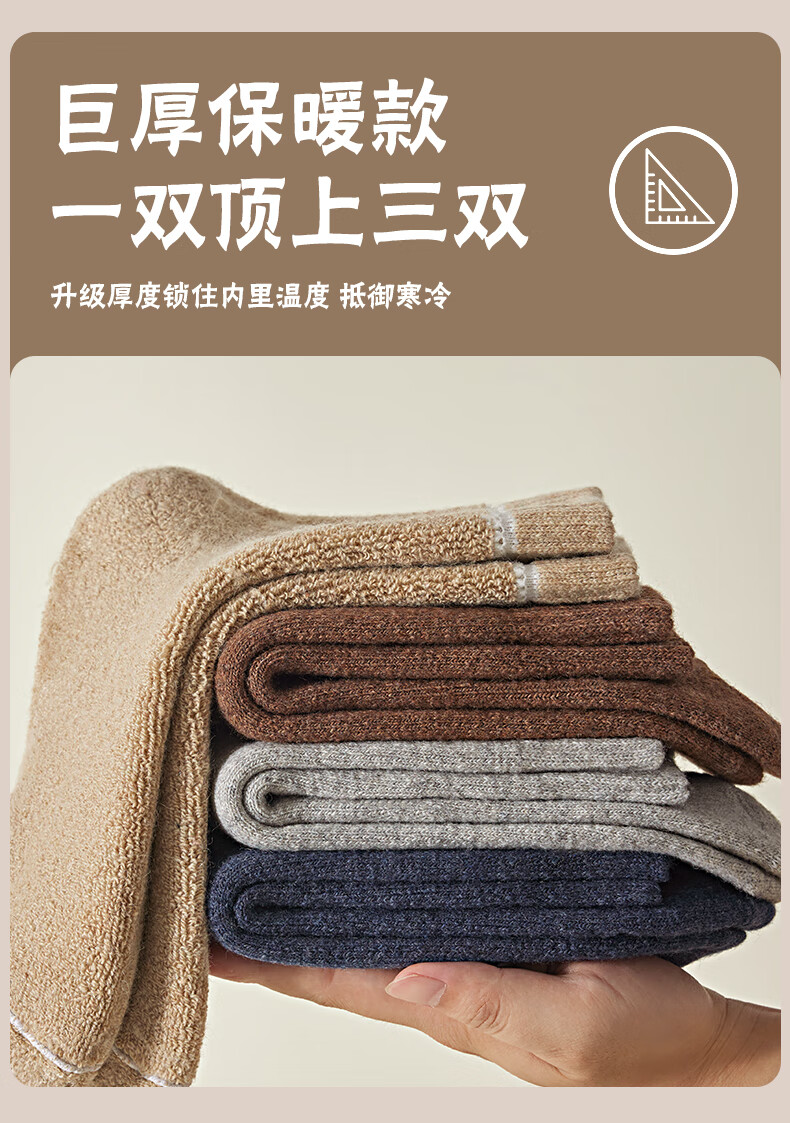 俞兆林4双厚羊毛袜子男士加厚加绒秋冬季保暖毛圈袜中筒东北长袜雪地袜