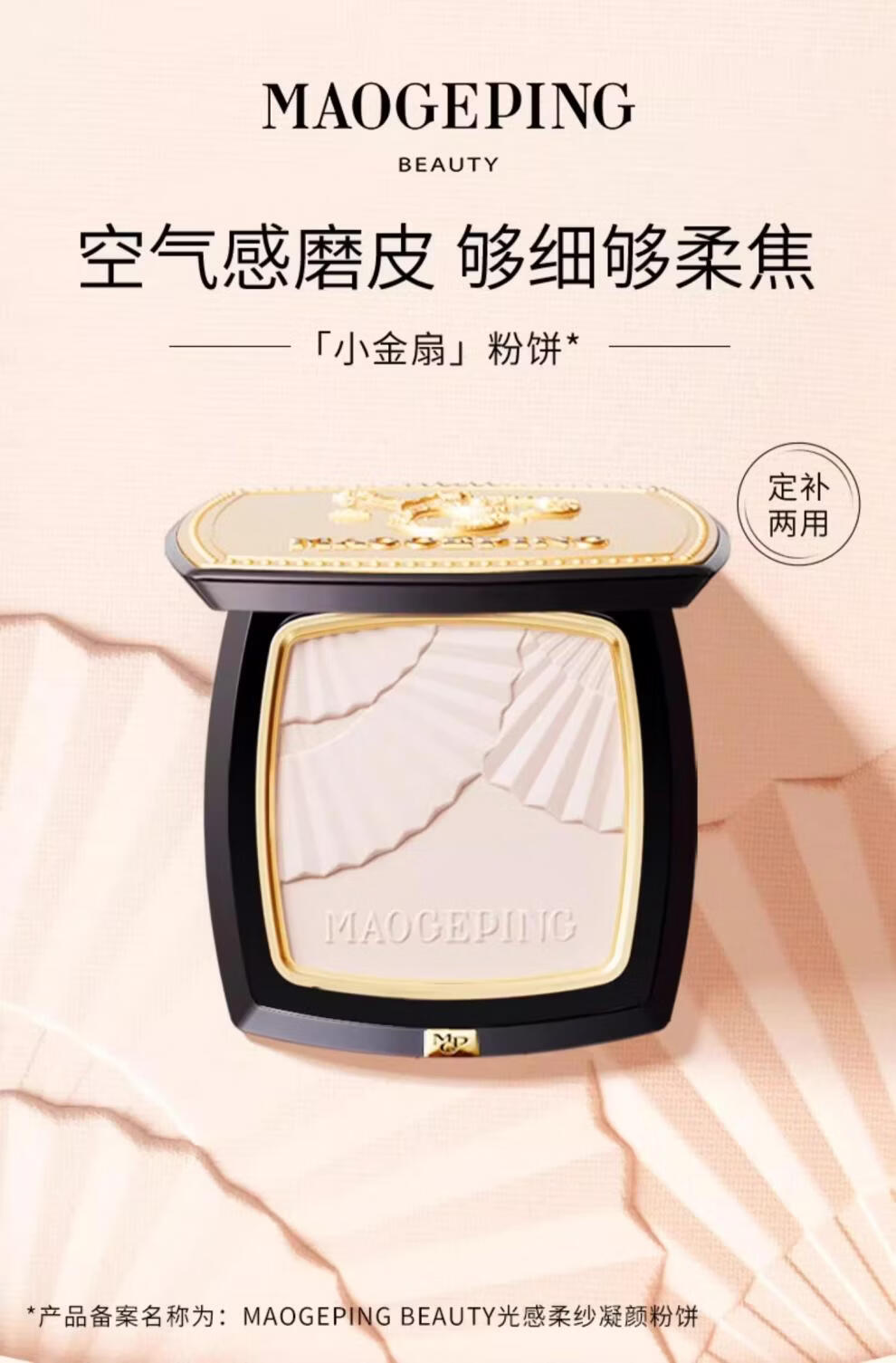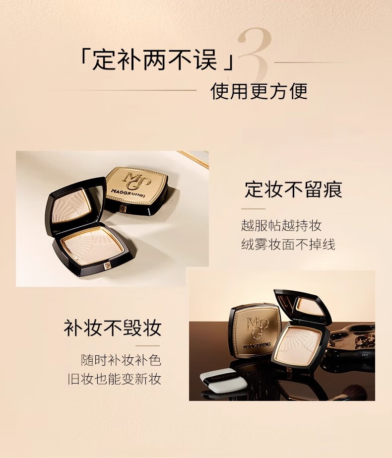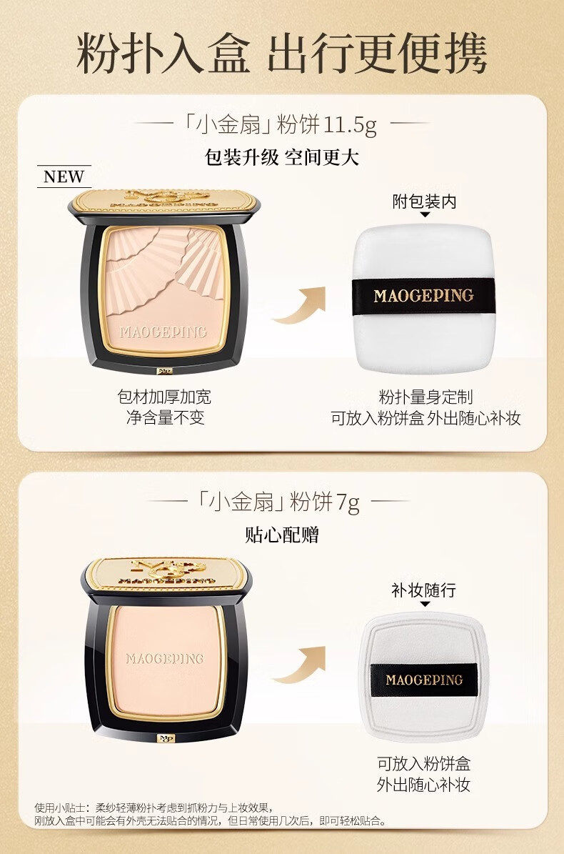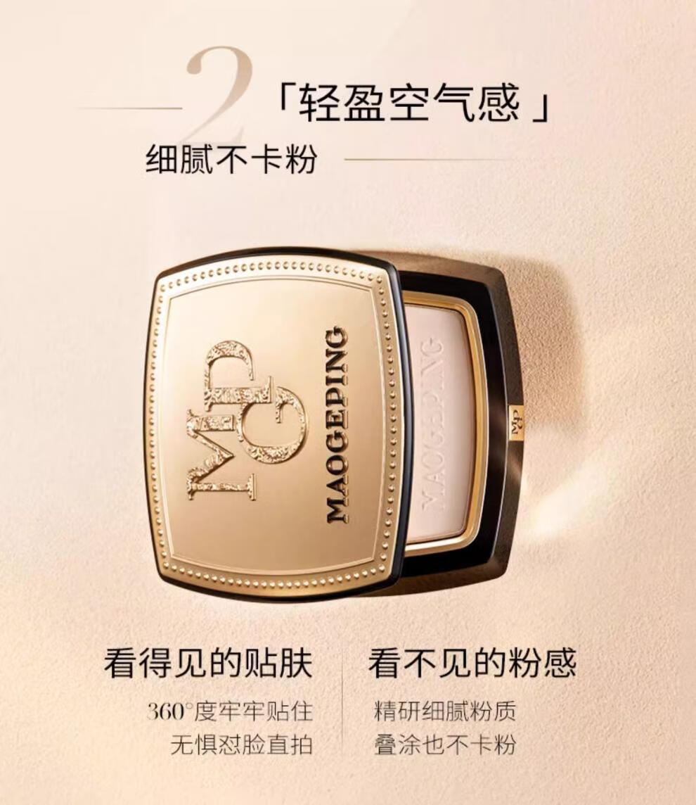 毛戈平(MAOGEPING)光感柔纱凝颜小金扇粉饼7g哑光定妆补妆控油持久定妆不脱妆 柔纱粉饼#801适合白皙肤色7g