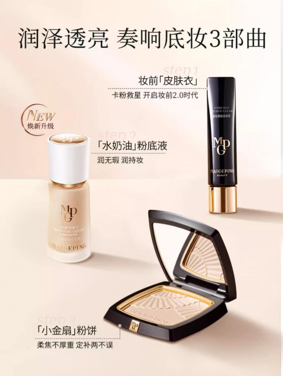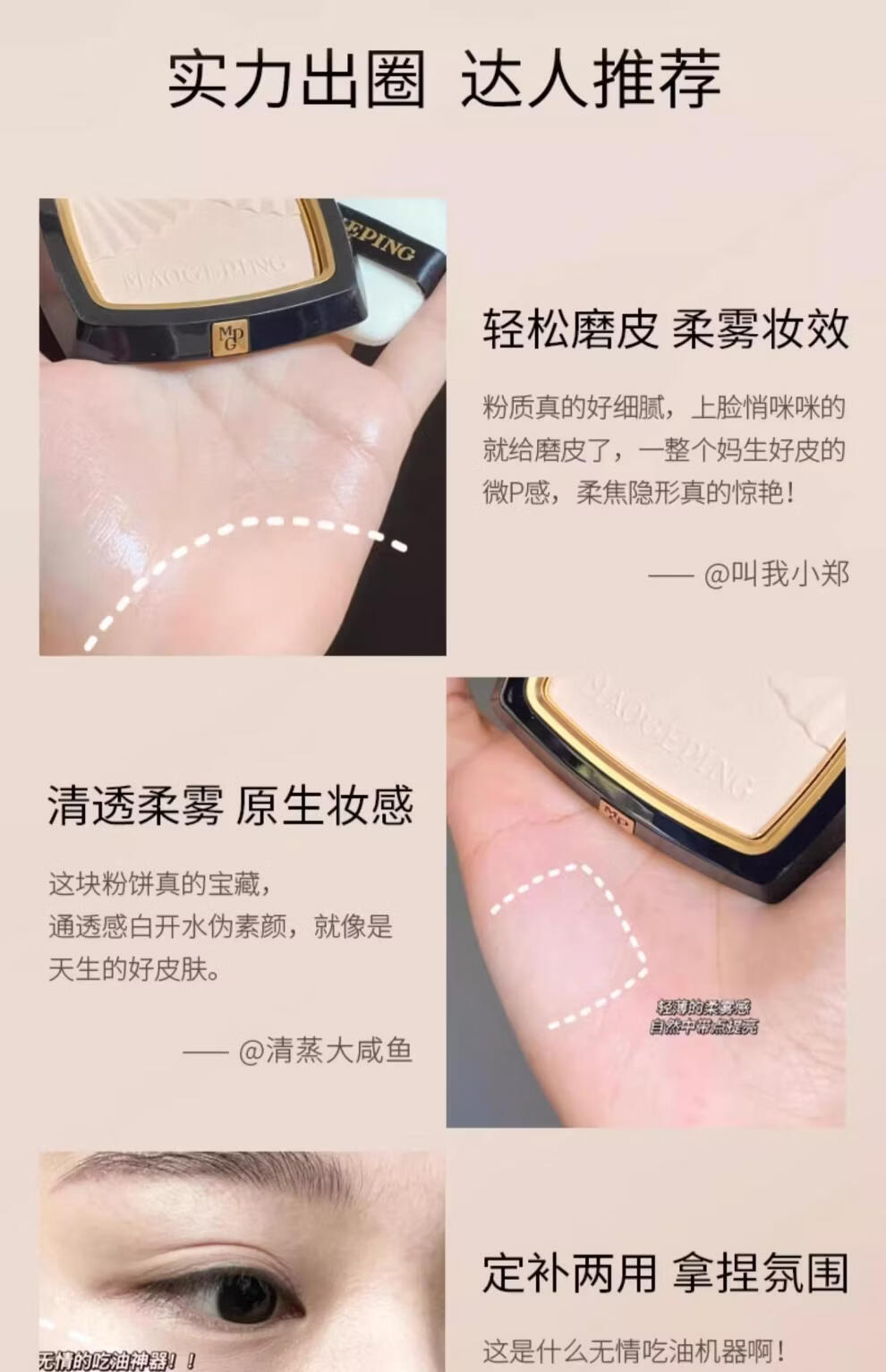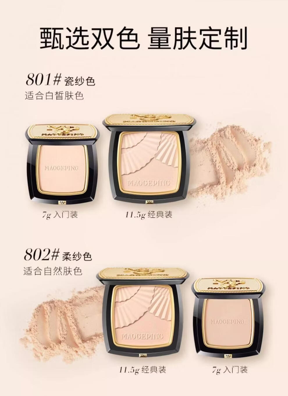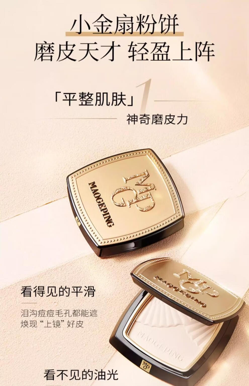 毛戈平(MAOGEPING)光感柔纱凝颜小金扇粉饼7g哑光定妆补妆控油持久定妆不脱妆 柔纱粉饼#801适合白皙肤色7g