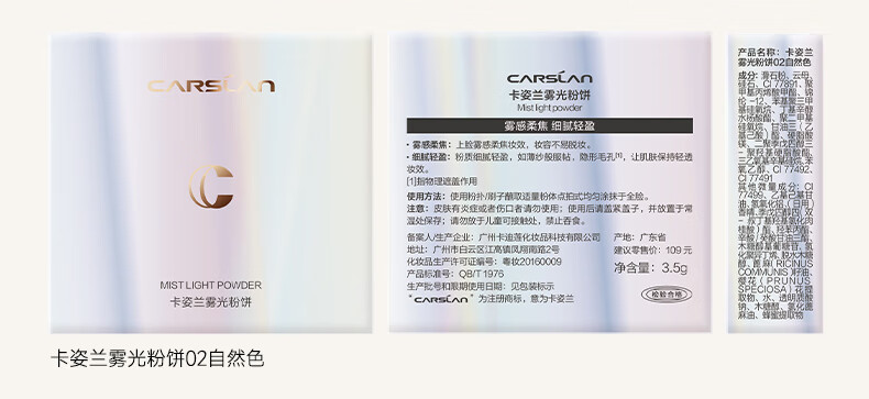 卡姿兰粉饼定妆粉不易脱妆持久遮瑕修容高光蜜粉饼生日新年礼物送女生 雾光粉饼02-自然色3.5g
