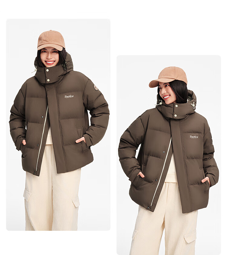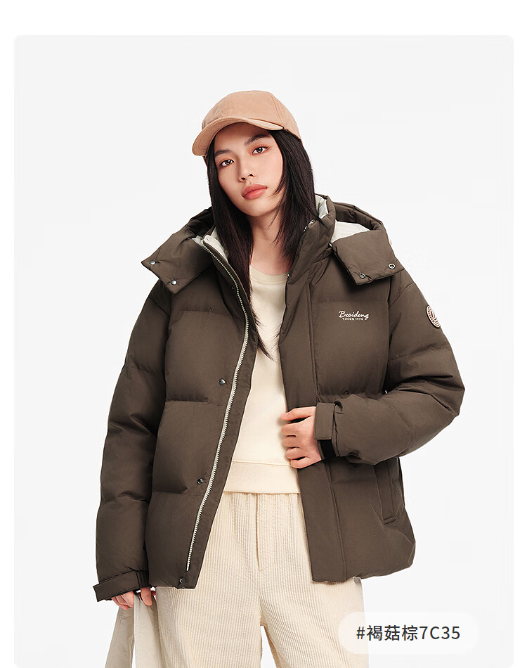 波司登(BOSIDENG)25年新款羽绒服男女同款情侣短款可脱卸帽保暖时尚经典百搭外套 褐菇棕|7C35-趋势推荐 L 170/92A 体重约120-140斤
