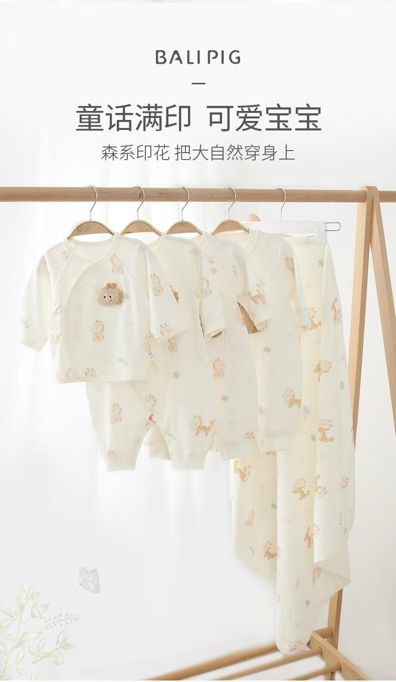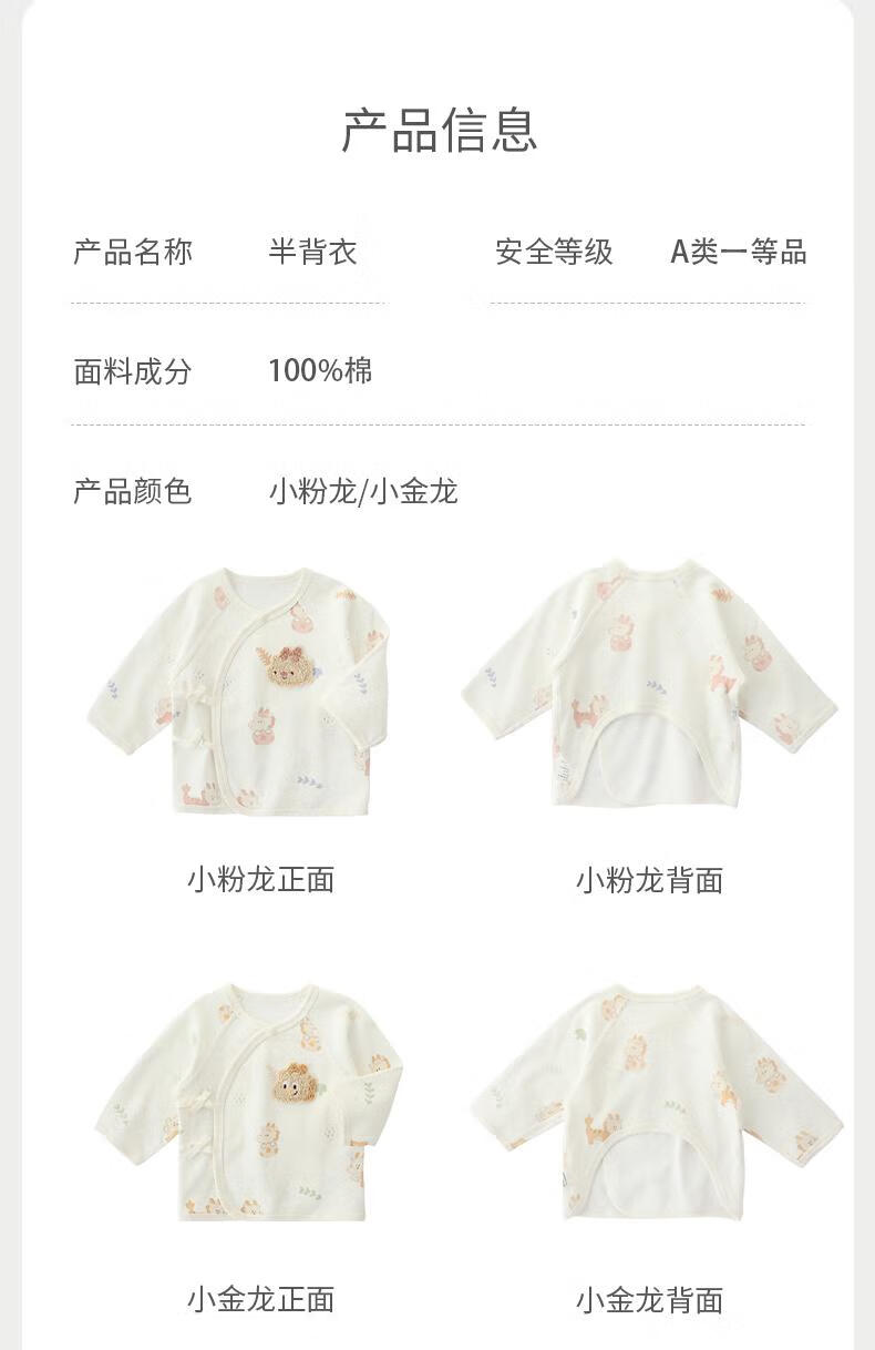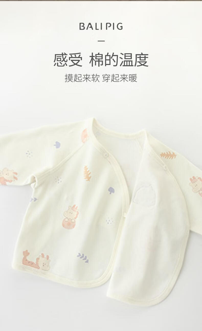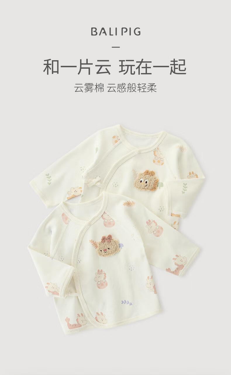 巴厘小猪(BALIPIG)【云雾棉】新生儿半背衣婴儿纯棉衣服秋季和尚服绑带上衣 小金龙 52 cm