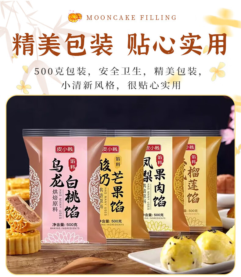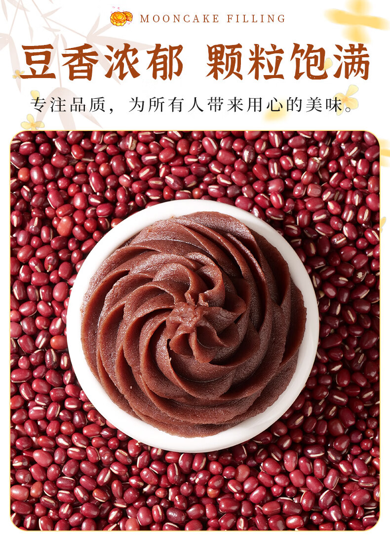 皮小贱月饼馅料红豆沙豆沙馅中秋广式月饼冰皮传统糕点蛋黄酥面包原料 红豆沙馅500克