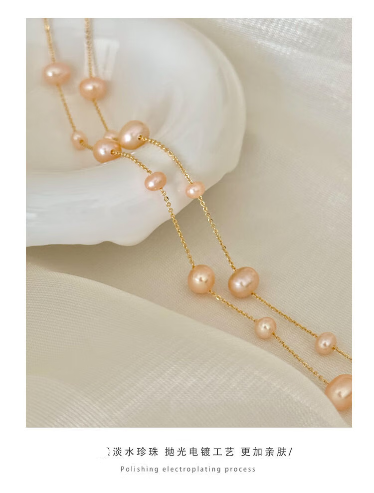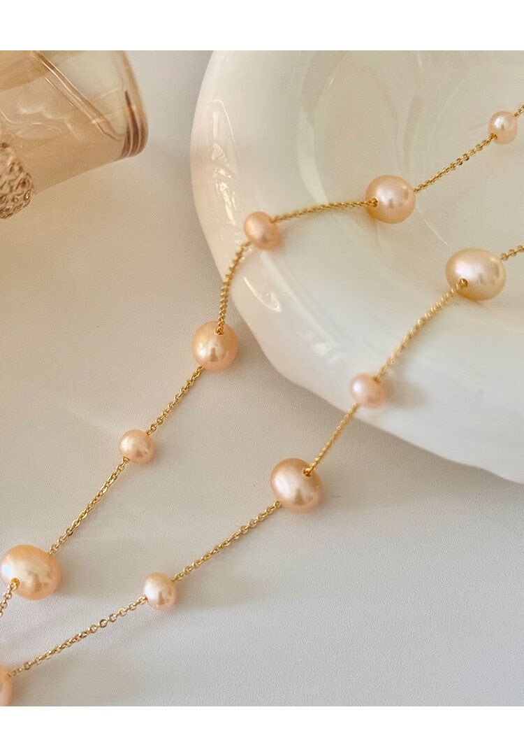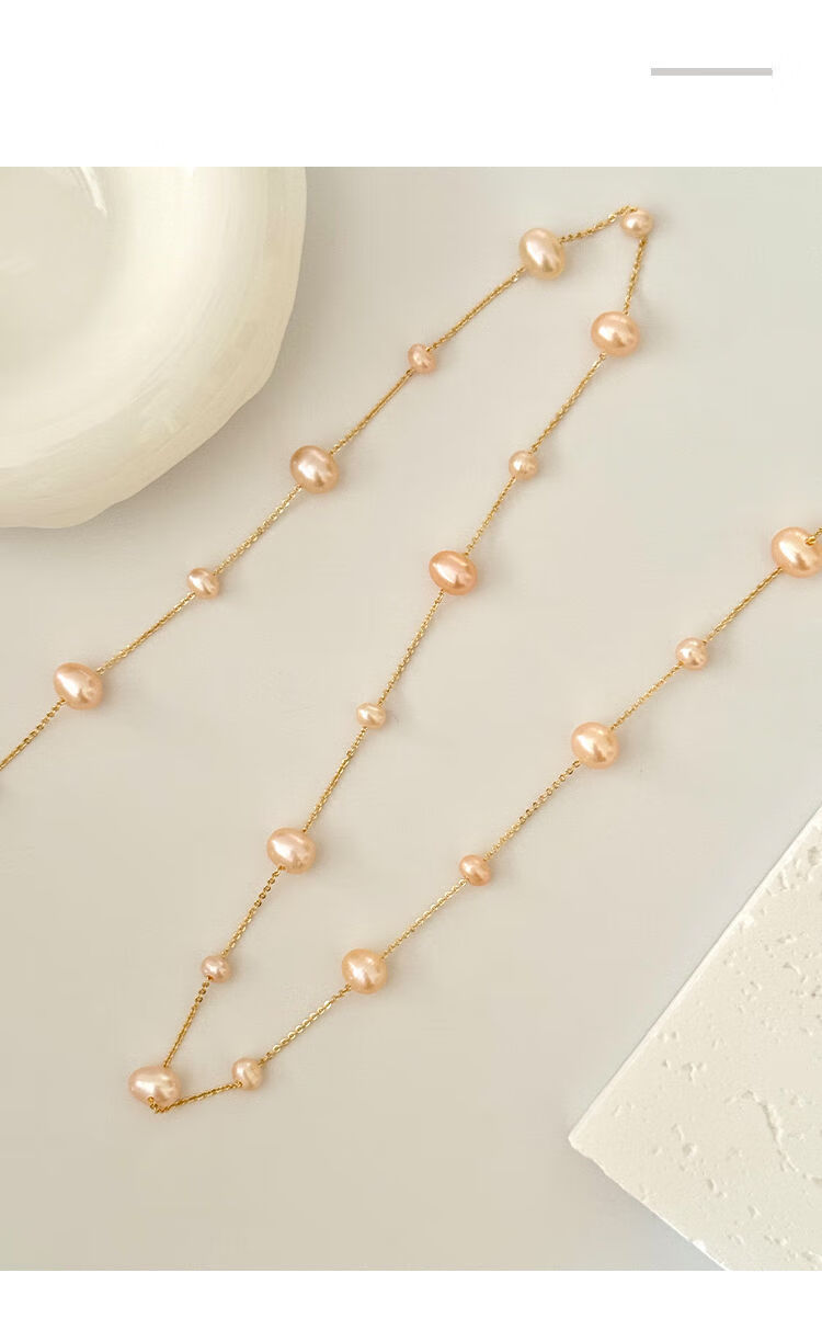 萨拉拉项链满天星珍珠 粉色淡水珍珠项链时尚款颈链毛衣链长款SN8194 粉色满天星淡水珍珠