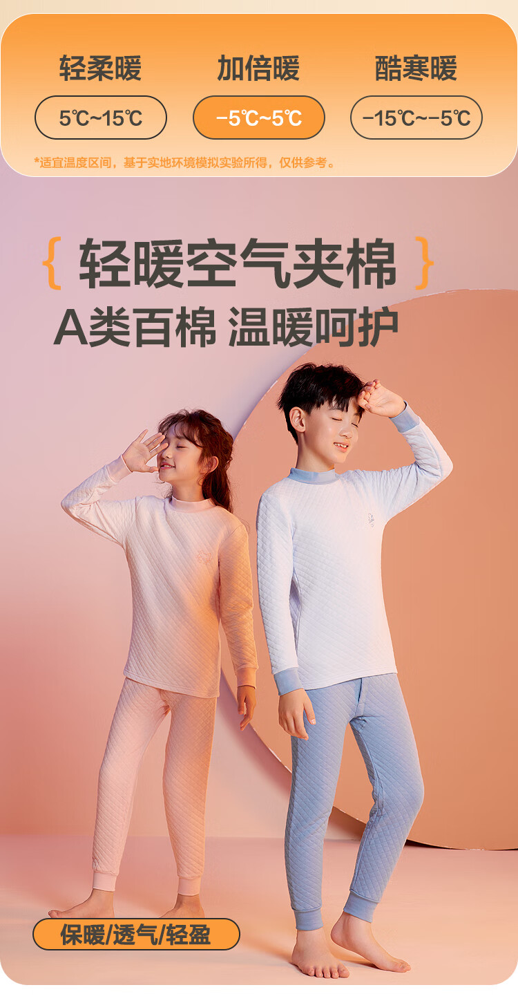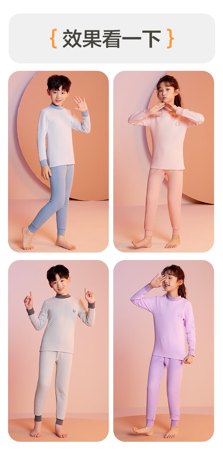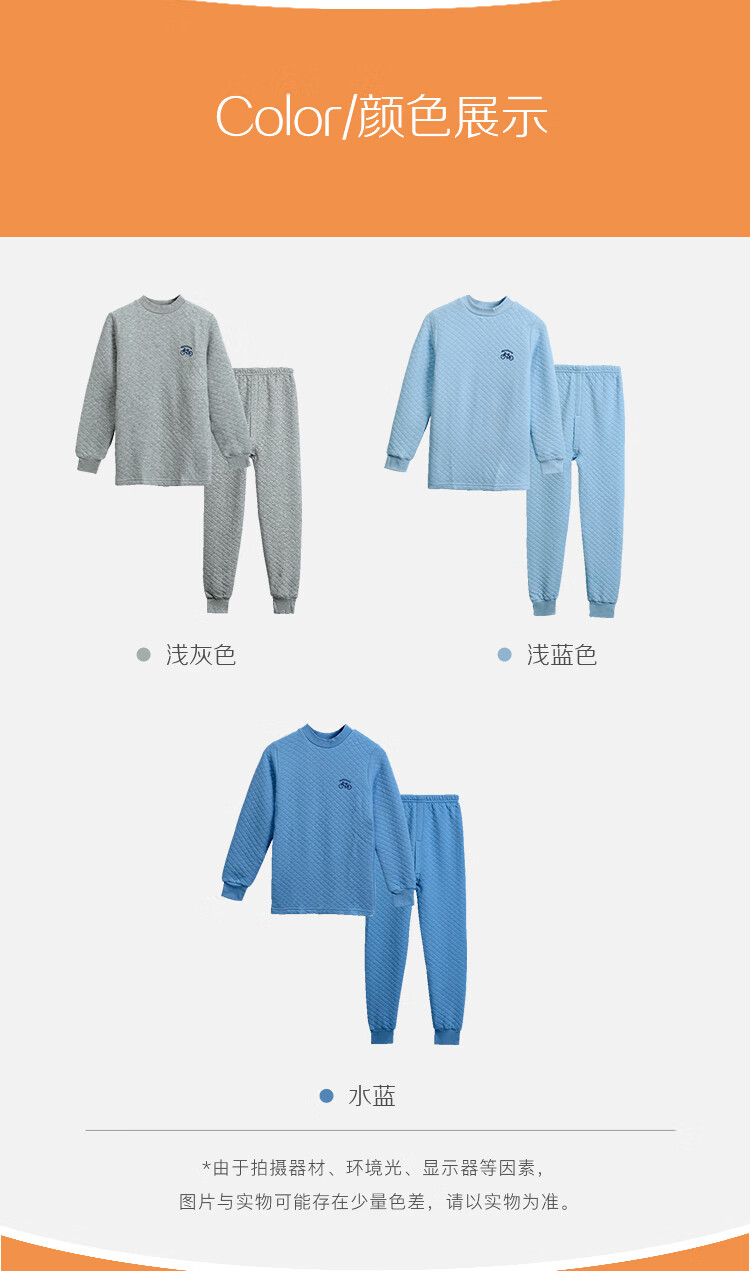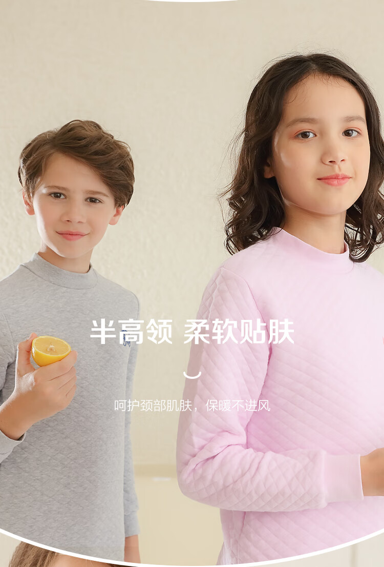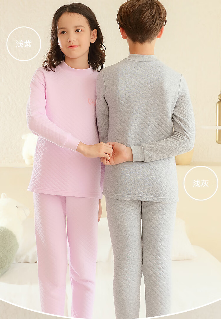 红豆居家(Hodohome)儿童保暖内衣男童半高领纯棉三层夹棉加厚空气层秋衣秋裤205蓝140