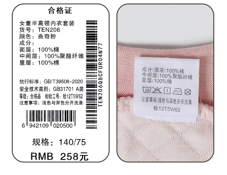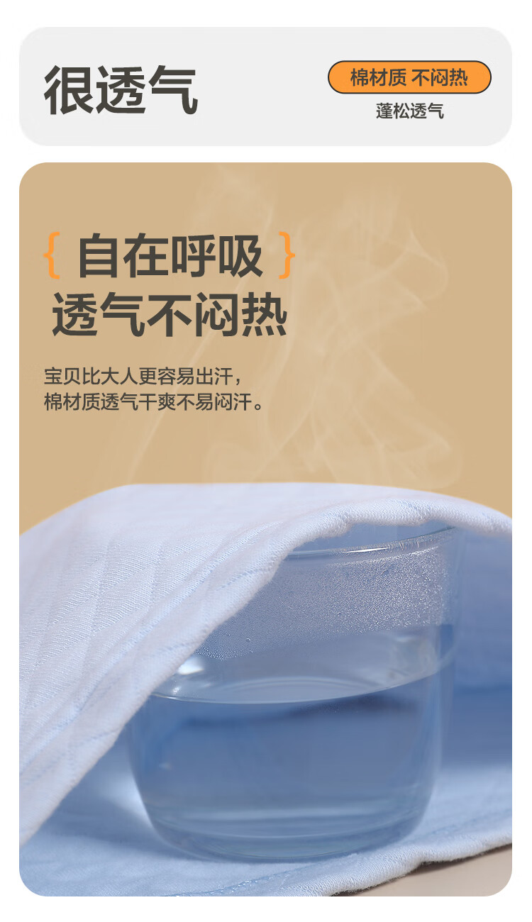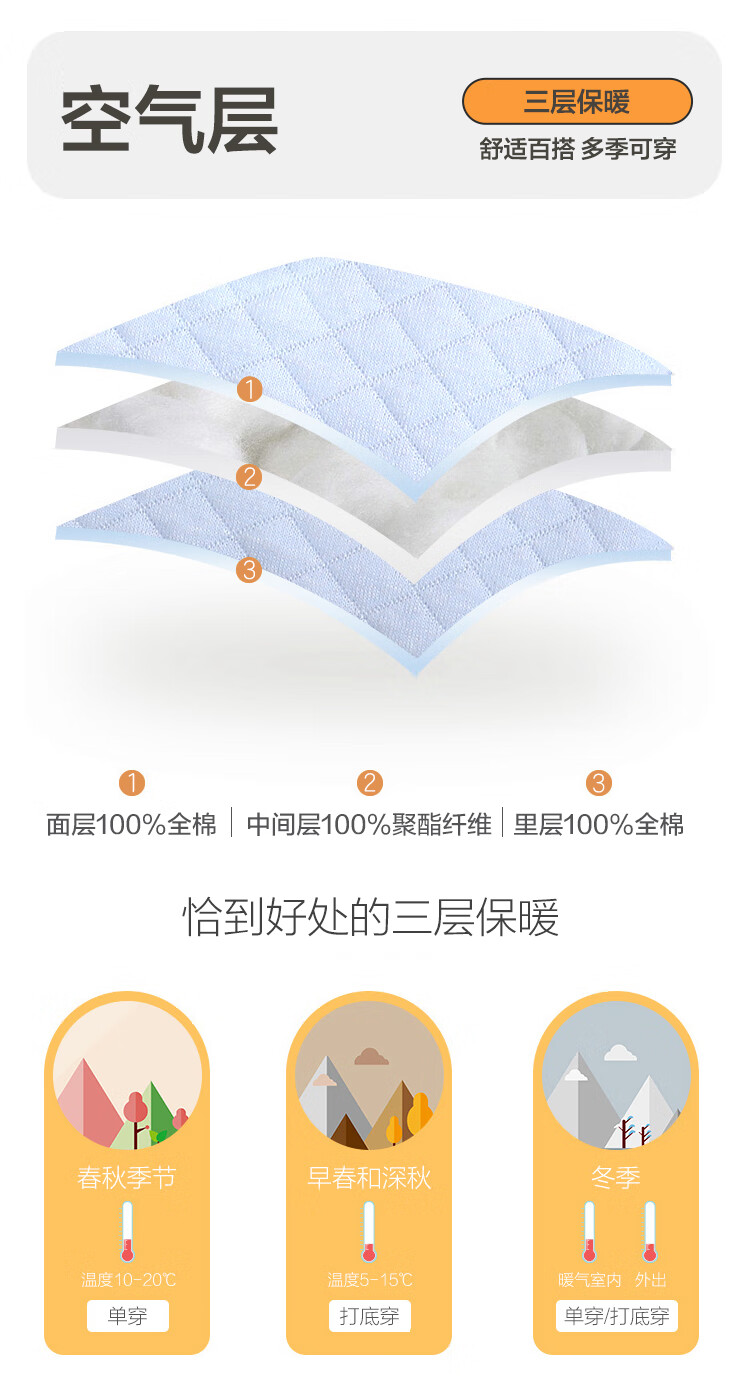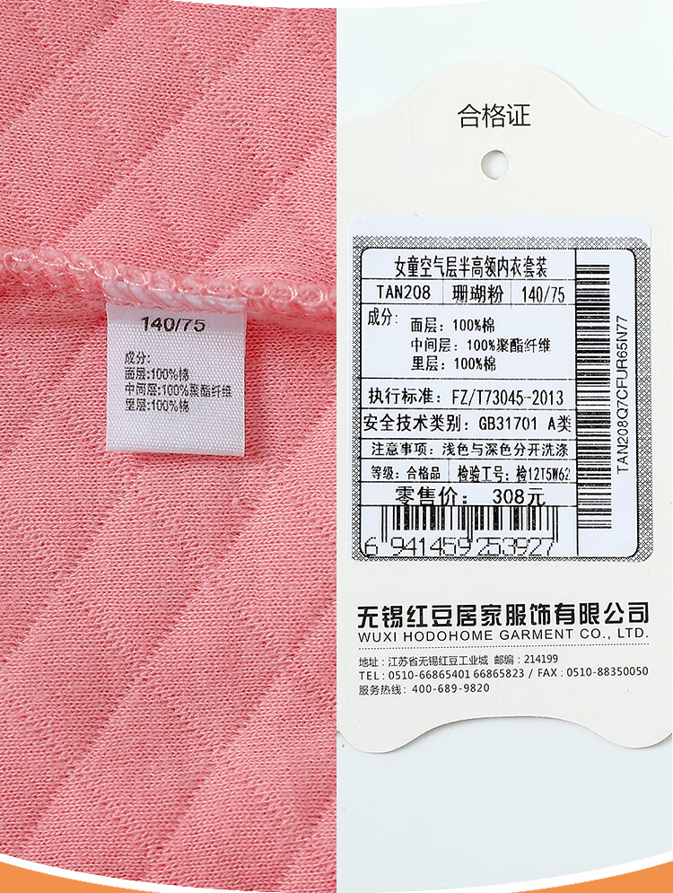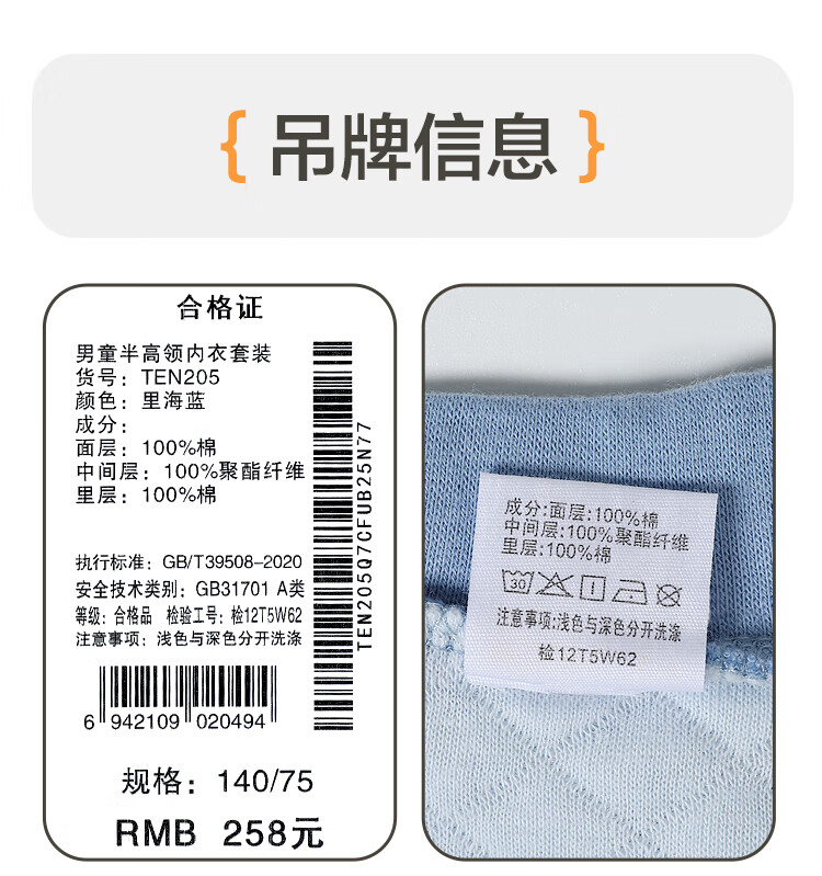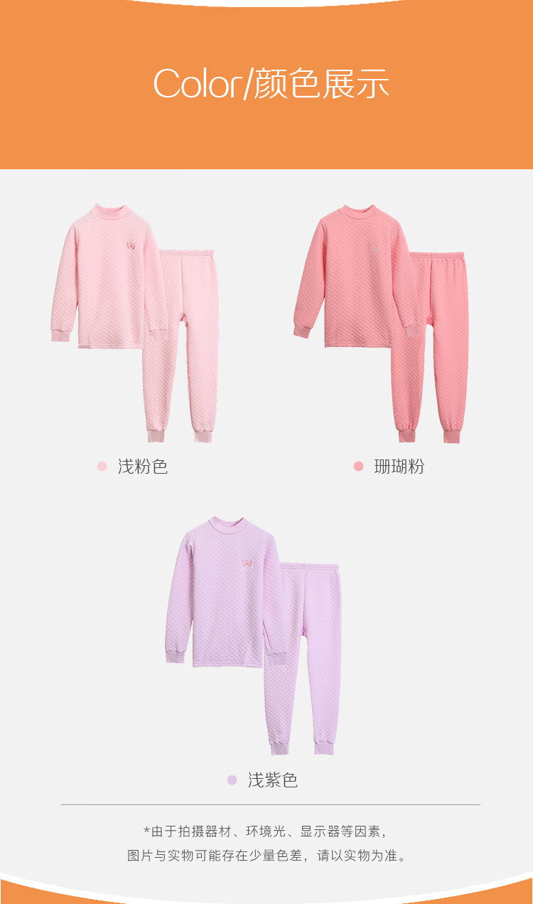 红豆居家(Hodohome)儿童保暖内衣男童半高领纯棉三层夹棉加厚空气层秋衣秋裤205蓝140