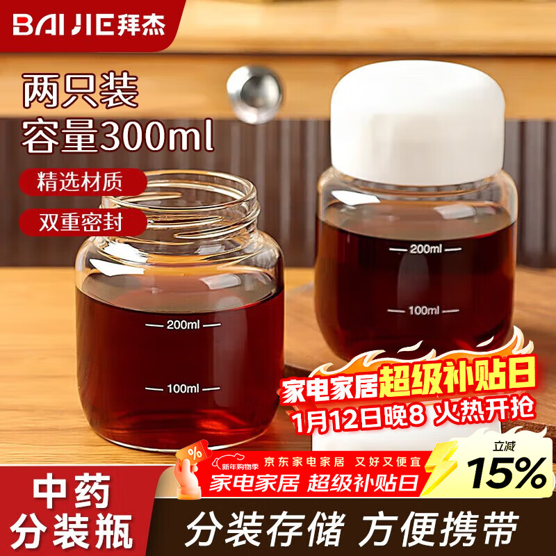 拜杰中药分装瓶可加热装中药杯中药瓶牛奶燕窝分装瓶密封罐300ml*2
