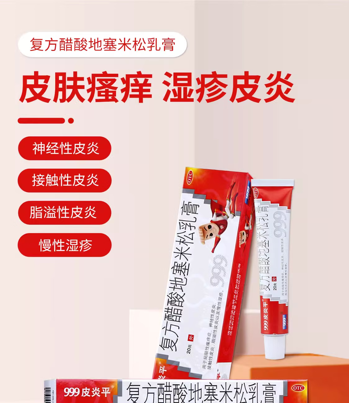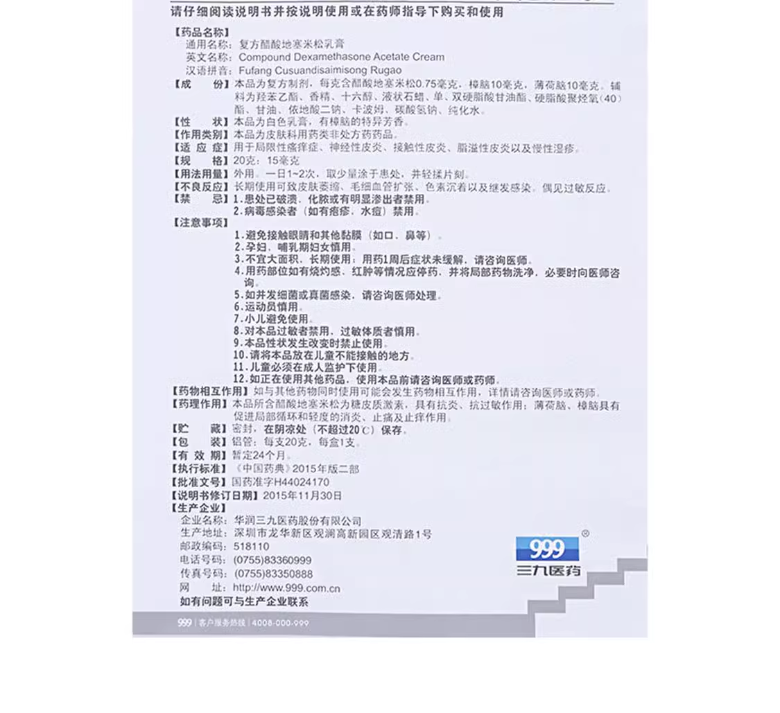 [999皮炎平]复方醋酸地塞米松乳膏 20g 1盒装 20g老款软膏神经性慢性湿疹皮肤男女瘙痒膏止痒三九 新鲜效期无棉签