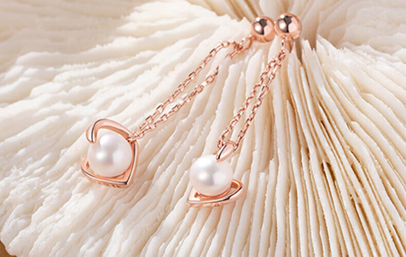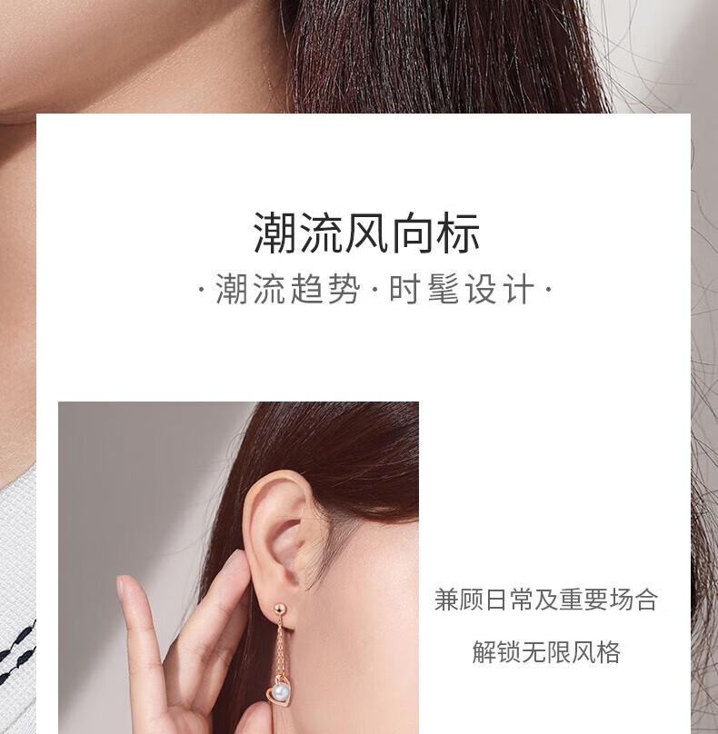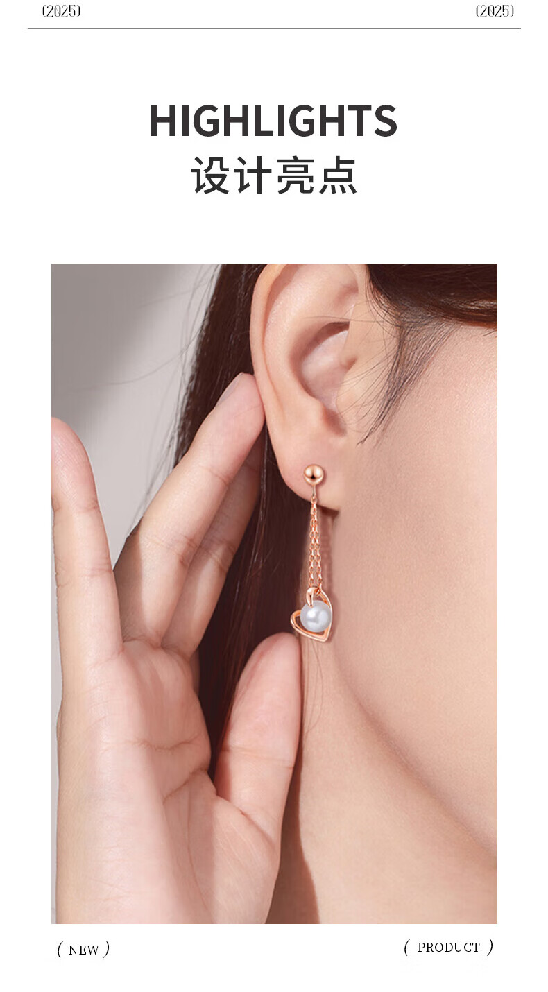 中国珠宝银爱心流苏珍珠耳环女2025新款耳钉耳坠实用新年生日礼物送女友