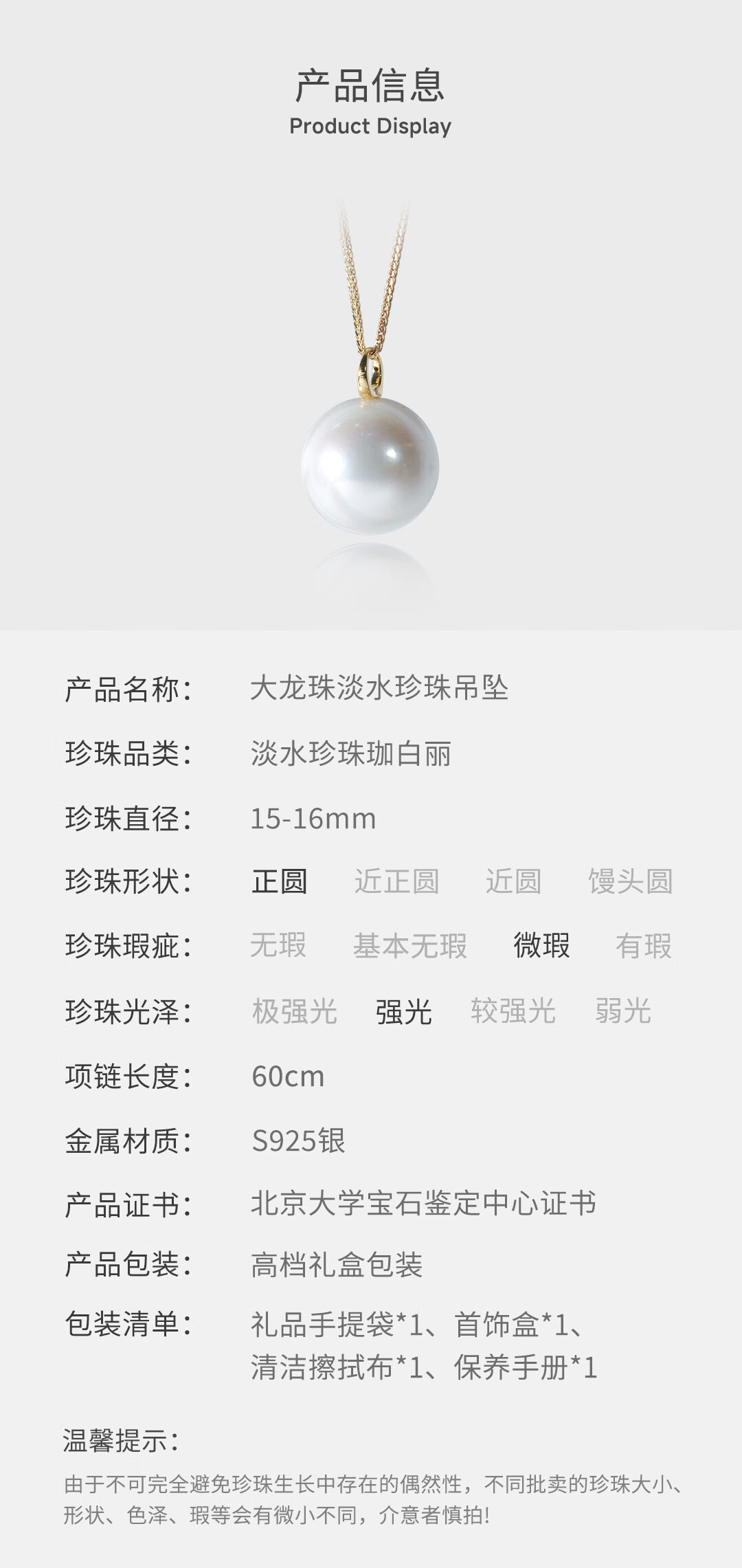 天使之泪淡水珍珠项链大龙珠吊坠15-16mm加长S925银秋冬毛衣链生日礼物女
