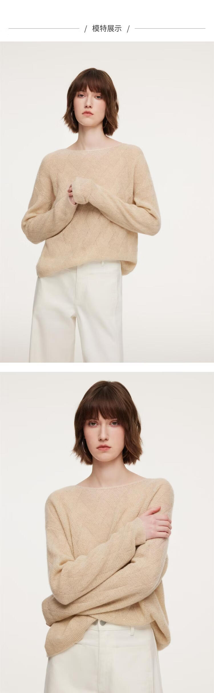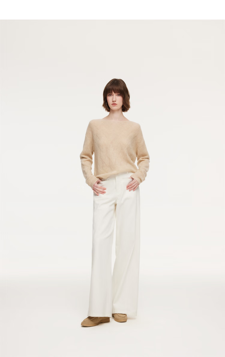 歌莉娅羊绒衫女春季2026新款巨好看一字领上衣慵懒毛衣1F1L5J100 71W杏色 S