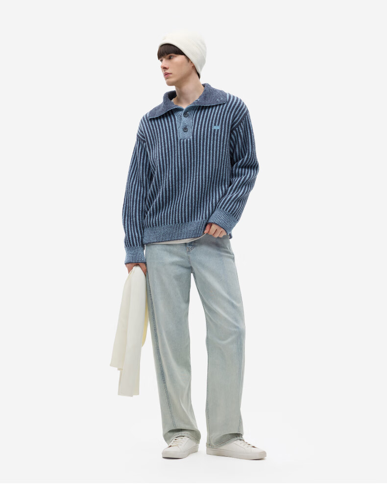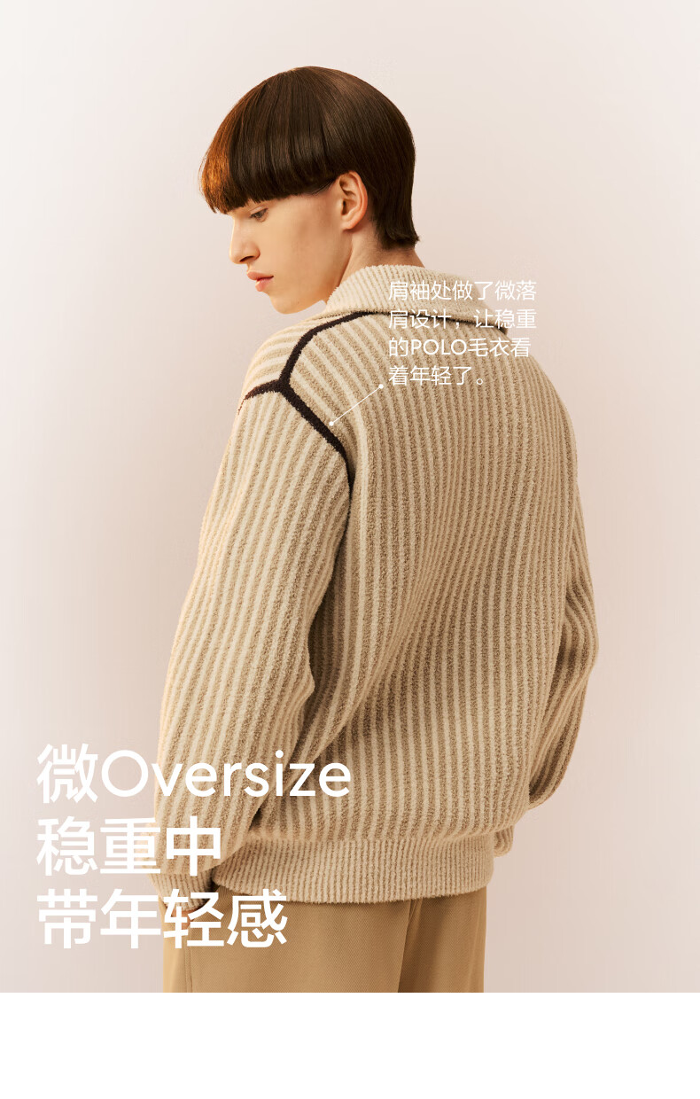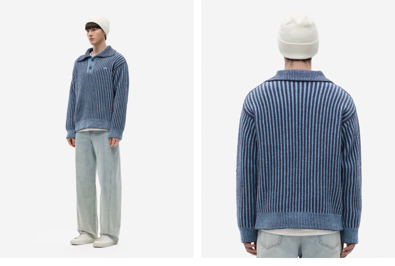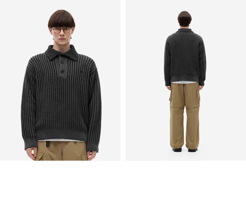 蕉内热皮302++男士中空纱半边绒翻领毛衣秋冬保暖打底衫长袖内搭上衣 黑色拼色 L