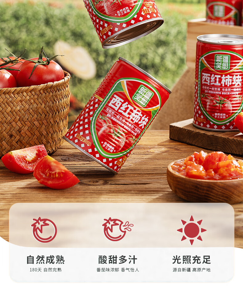 笑厨(XIAOCHU)【25年新产季】新疆西红柿块配料新鲜番茄块罐头调味酱番茄丁罐头 【25年新货】西红柿块400g*1罐