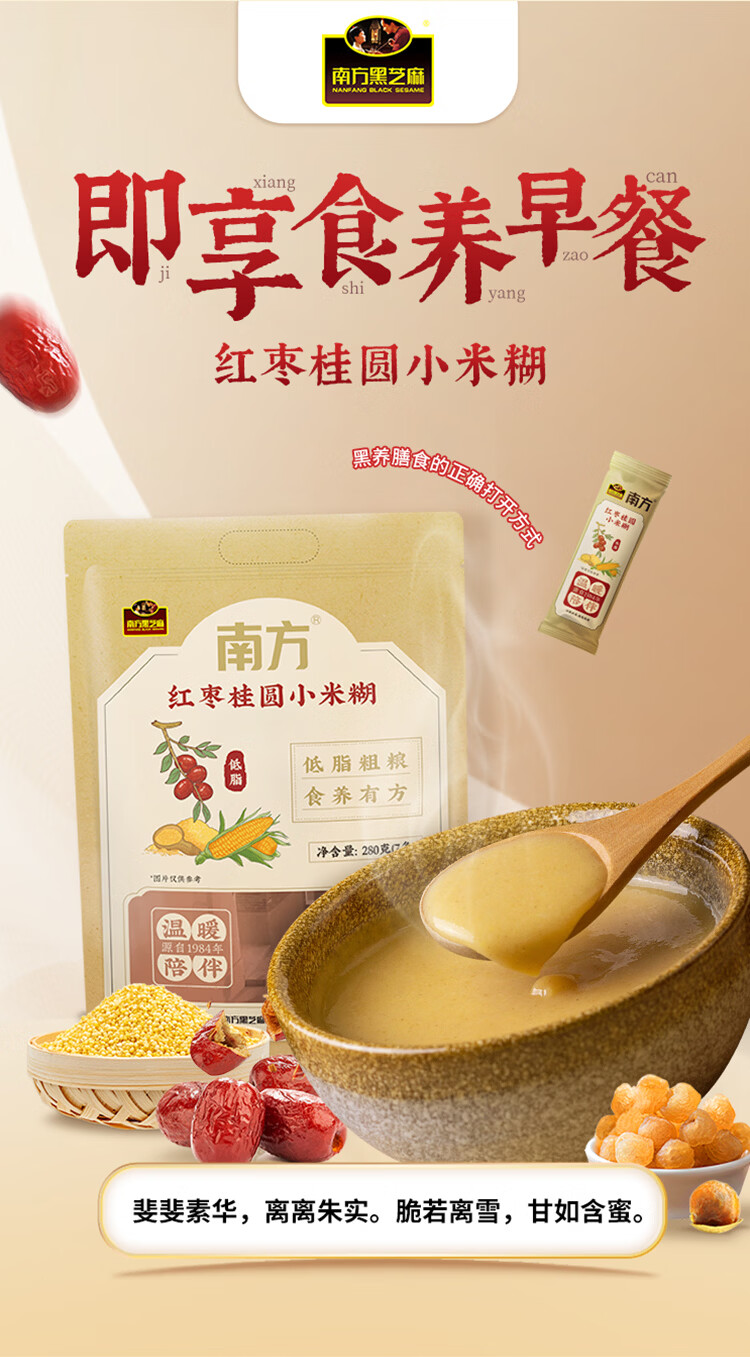 南方黑芝麻糊经典粗粮组合营养早餐 原味糊 280g*2袋 +小米糊280g*2袋