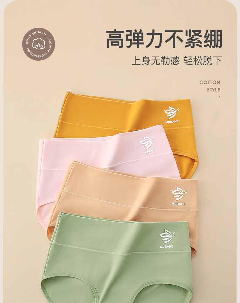 简约纯棉内裤女抗菌抑菌底裆收腹舒适透气亲肤女士中高腰三角裤 C款中腰1条装-随机颜色 2XL (中腰XL码)120-145斤