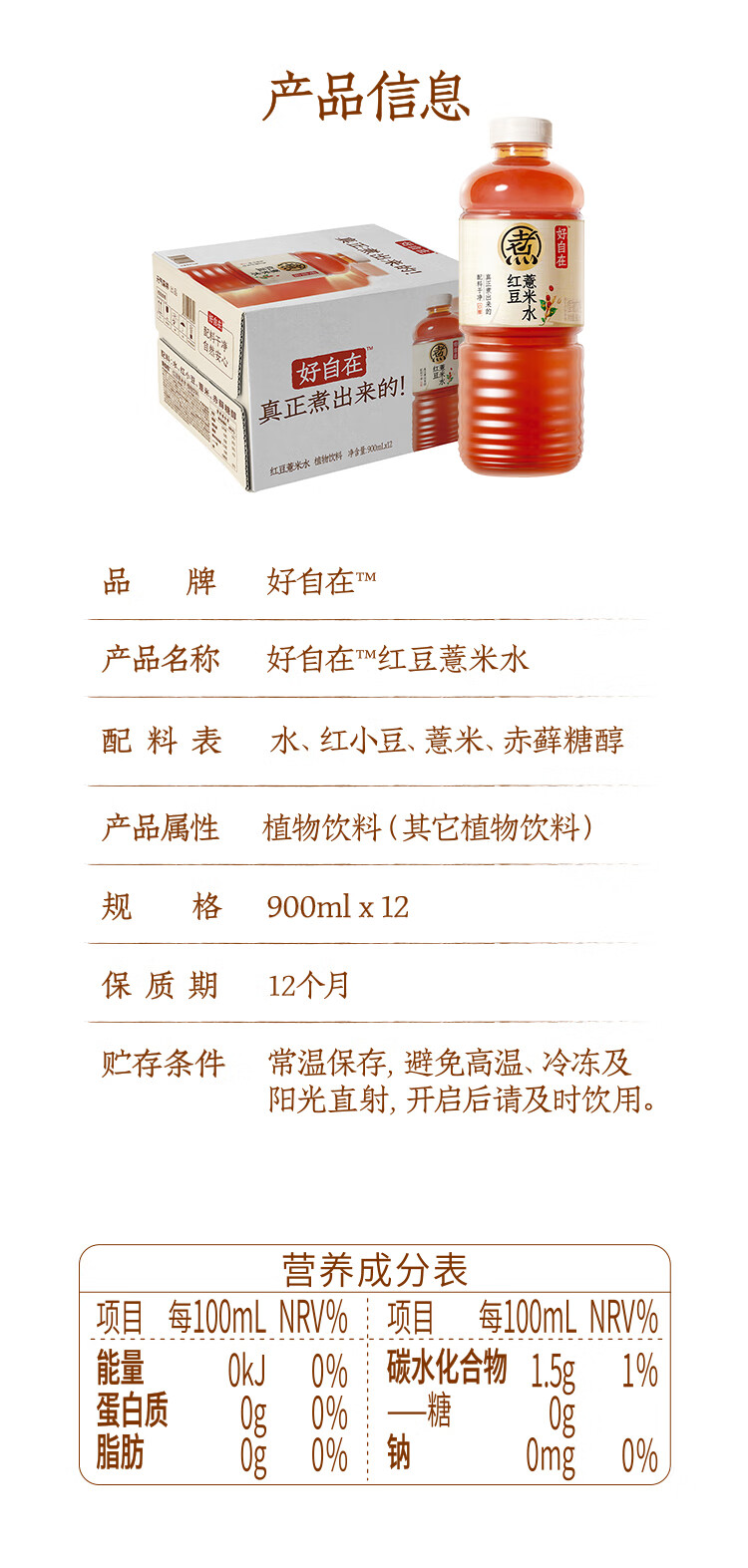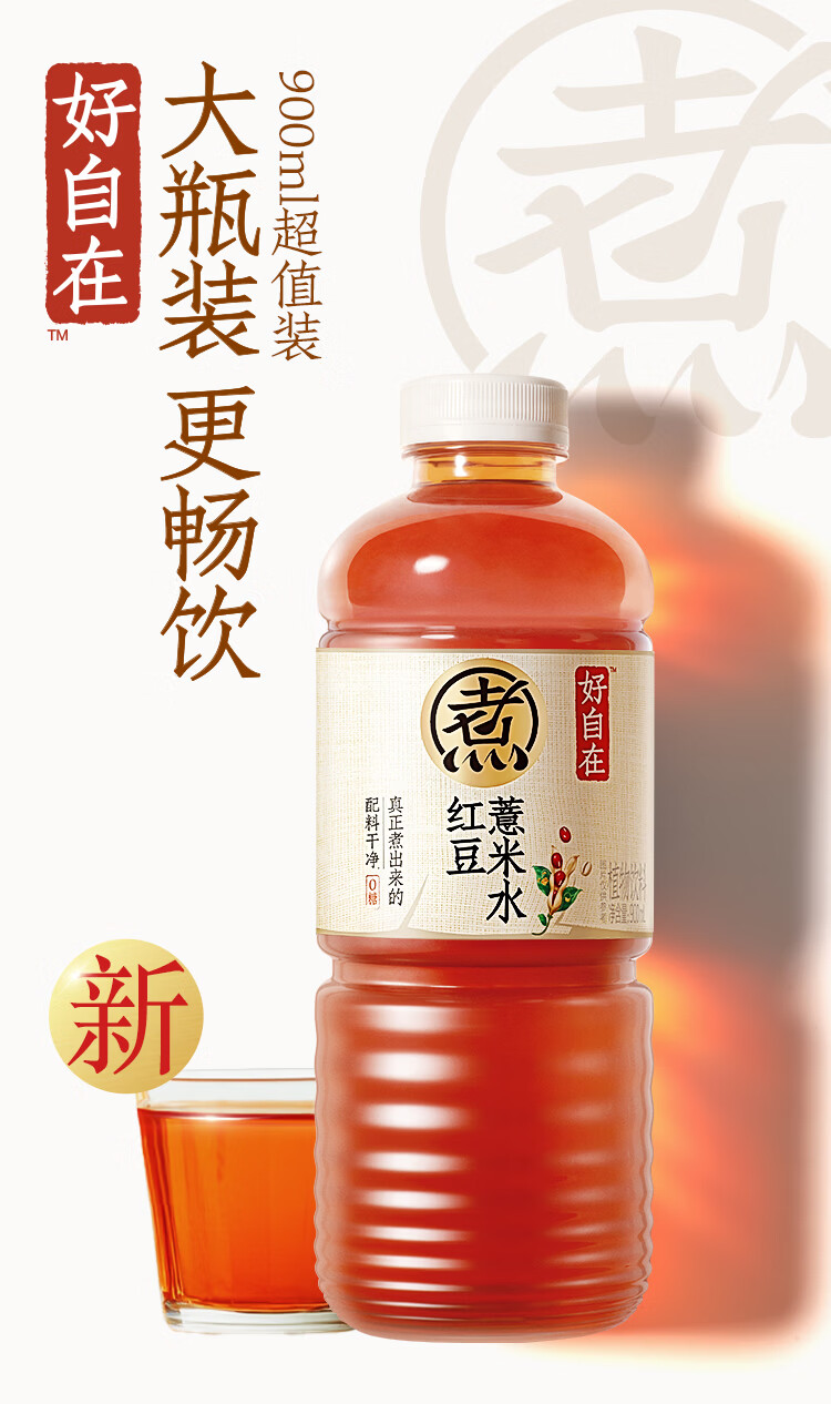 元气森林【好自在】 红豆薏米水900mL*12整箱 量贩装(新老包装随机发货)
