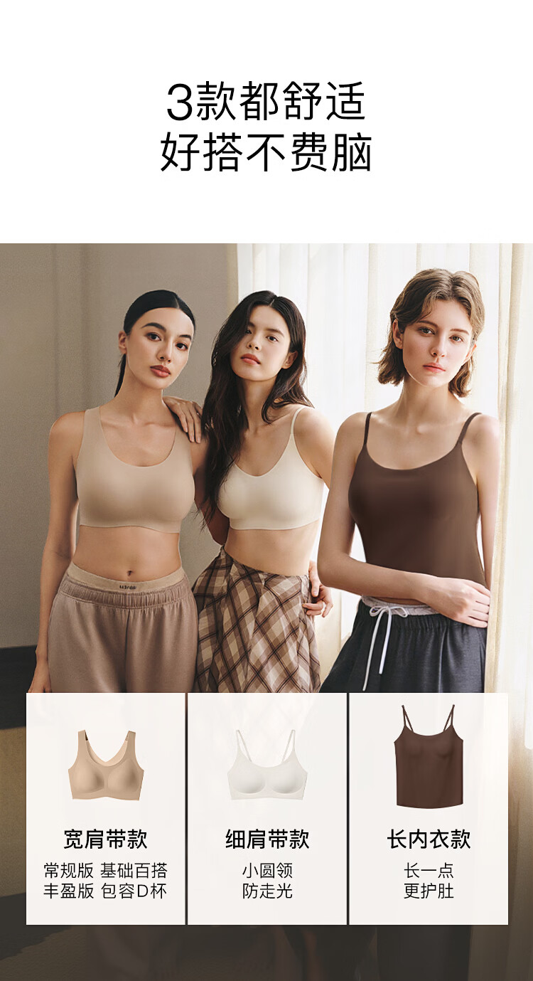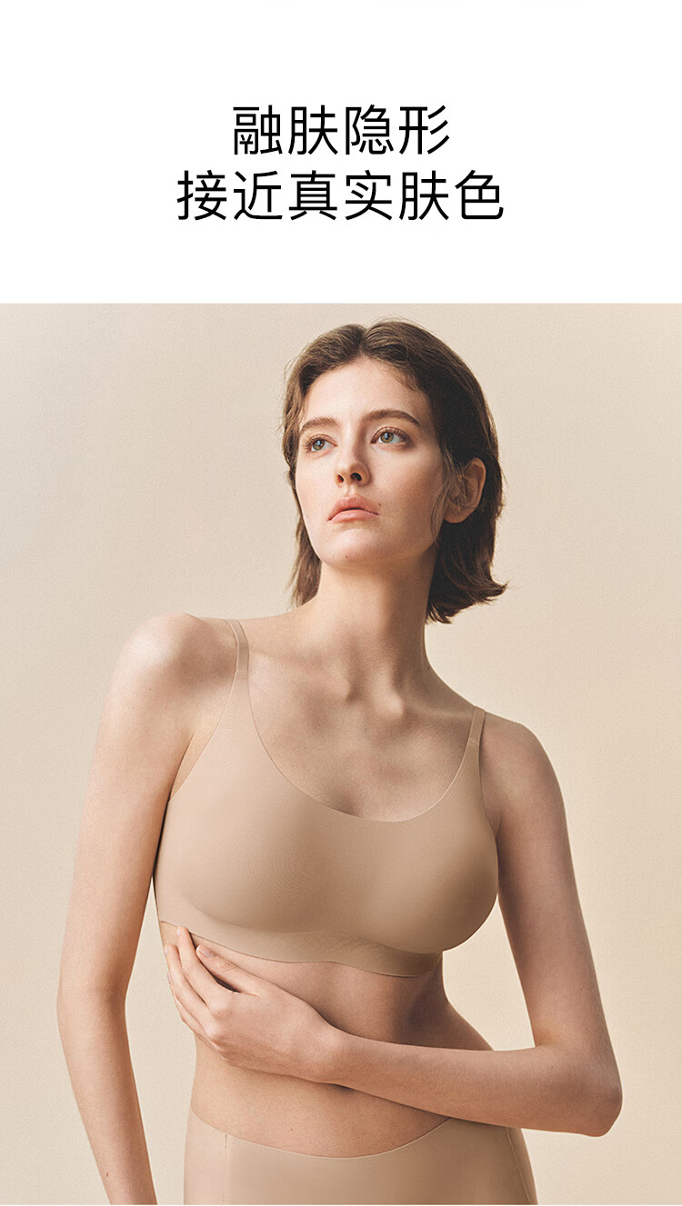 ubras无尺码小奶皮免拆胸垫升级版背心文胸罩隐形无痕内衣女燕麦奶色
