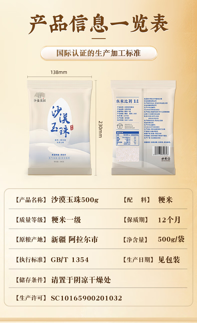 羊脂籽米 新疆大米1斤 沙漠玉珠香米 粳米胚芽米氮气保鲜500g 2025年新米