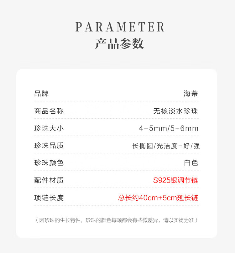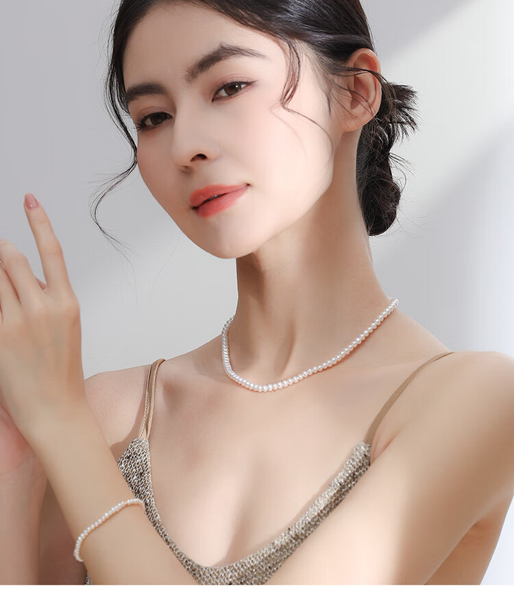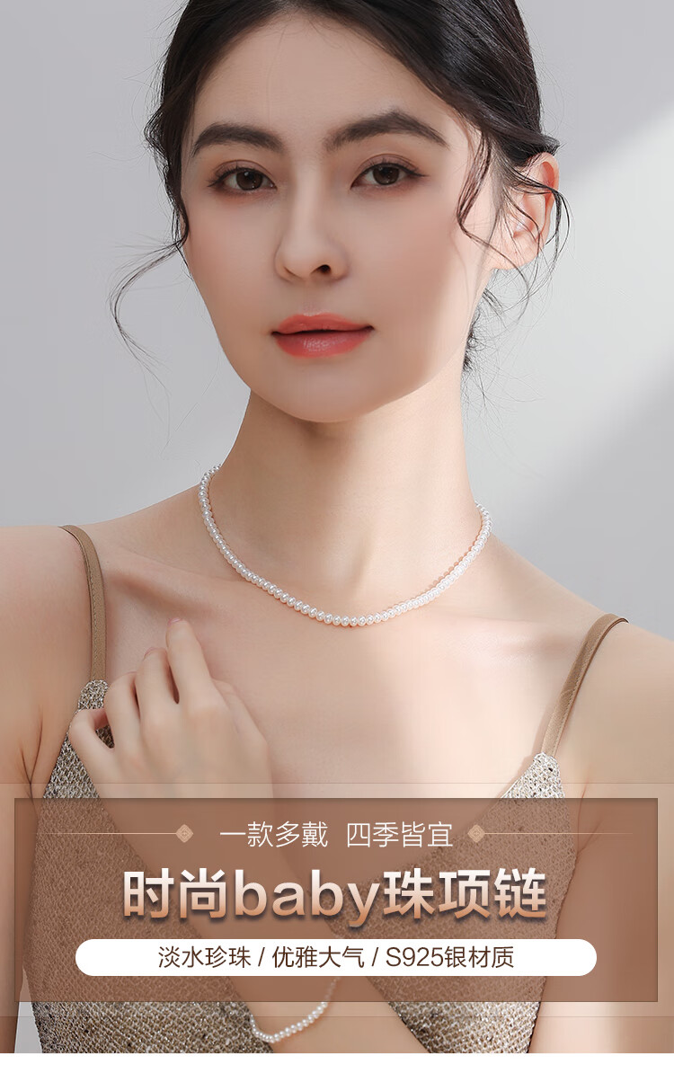 海蒂(haidi)4-5mm小米珠淡水珍珠项链女年轻款送女友礼物附证书S925银