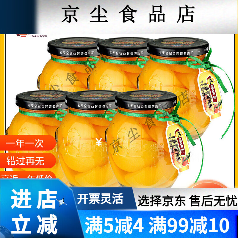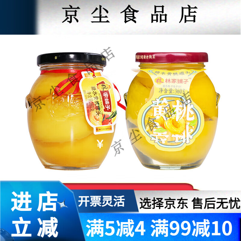 林家铺子黄桃罐头360g6罐玻璃瓶装整箱新鲜水果即食零食烘焙原料桃子 原料桃子