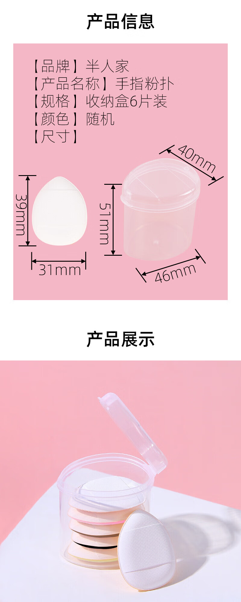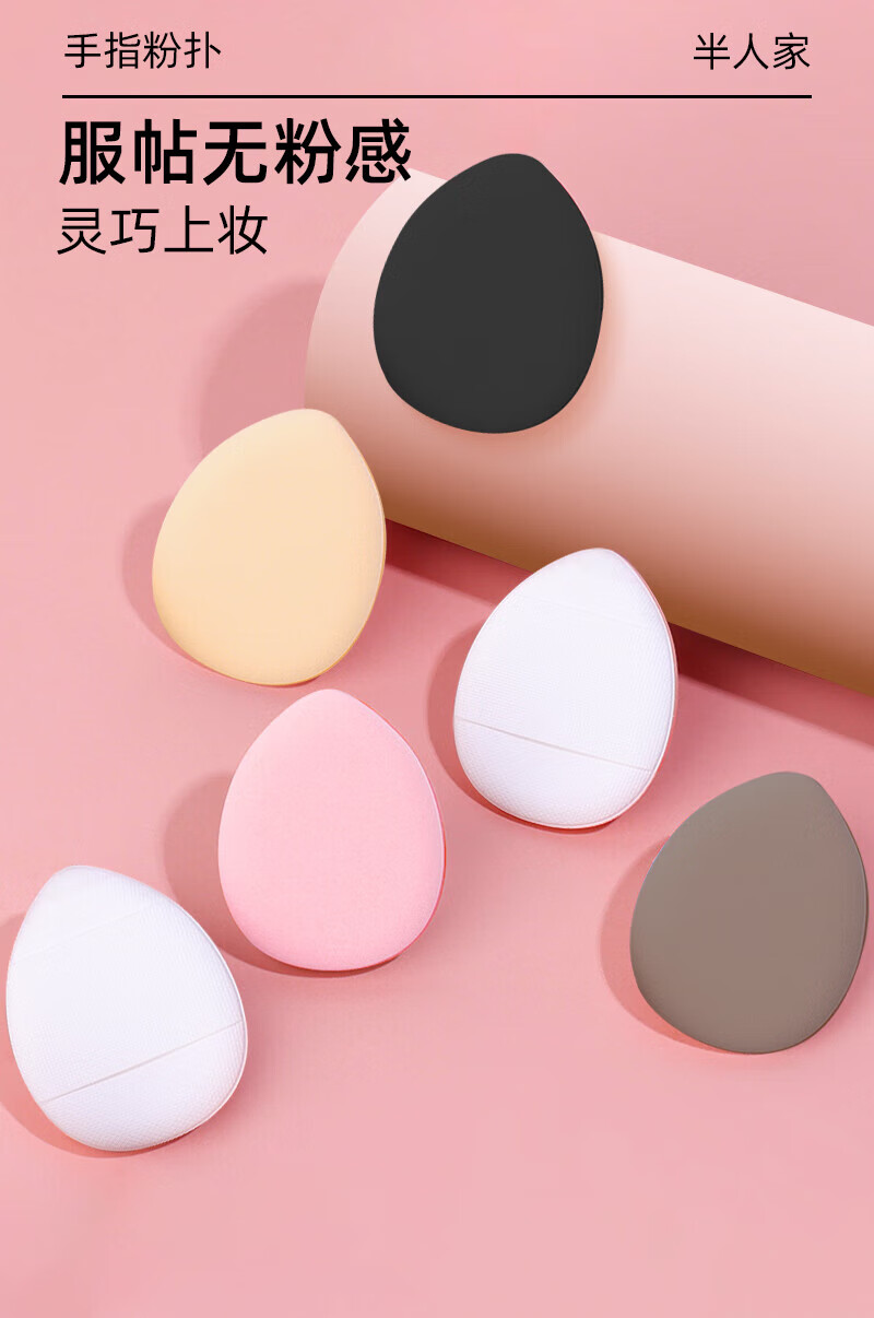 半人家迷你指尖气垫粉扑小号不吃不卡粉腮红粉底液定妆遮瑕小巧携便学生 【颜色随机】 6枚 (囎1个盒子)