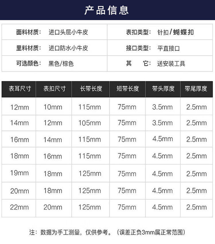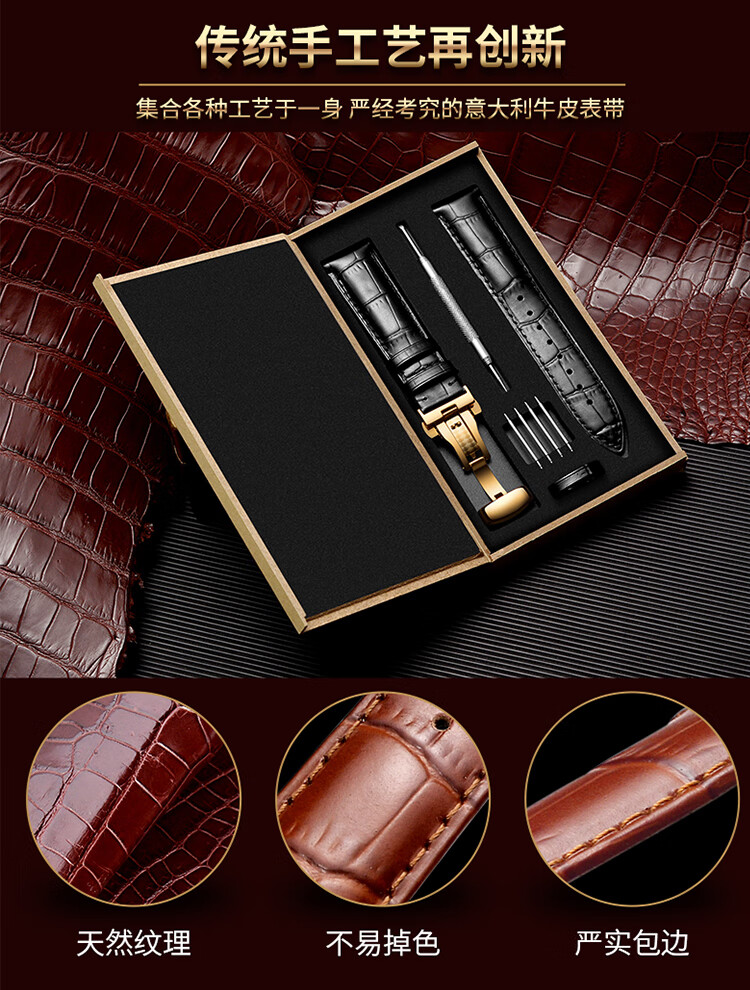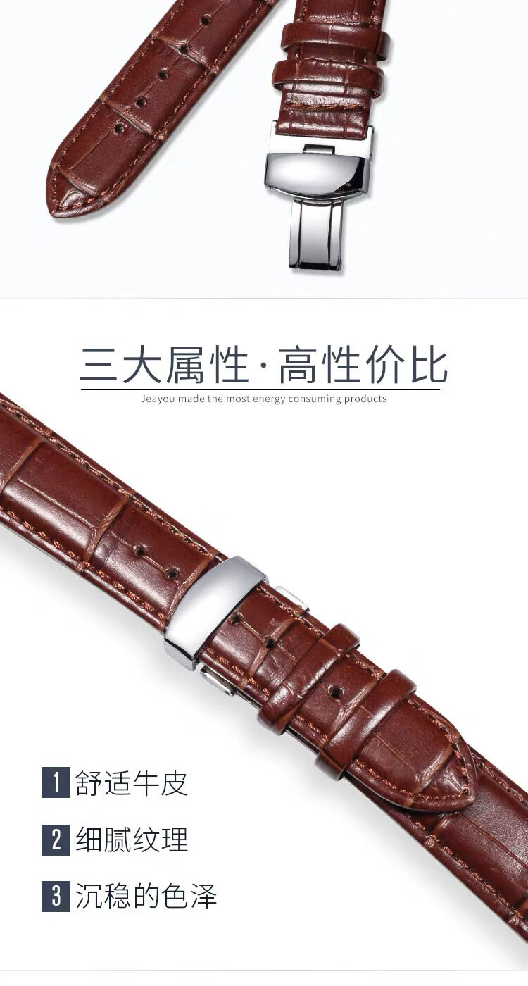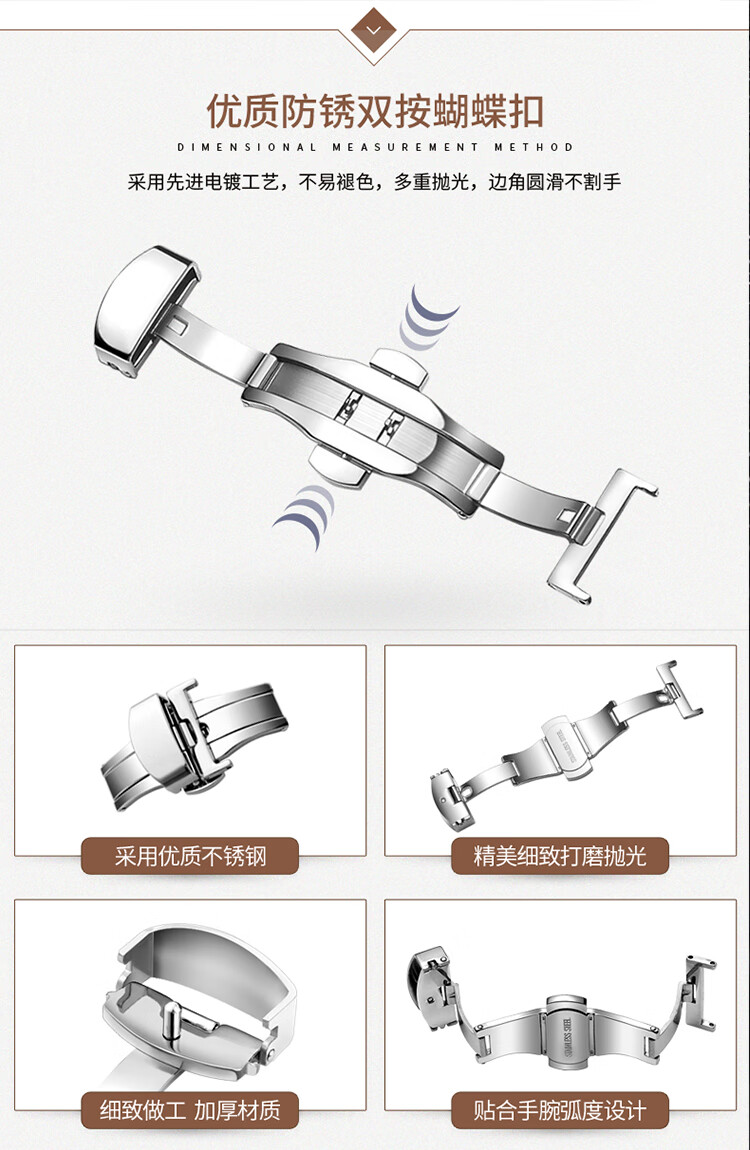 碧允真牛皮表带男女通用手表带蝴蝶扣配件头层皮带针扣表链品牌dw代用 黑色竹节纹#亮色蝴蝶扣 12mm