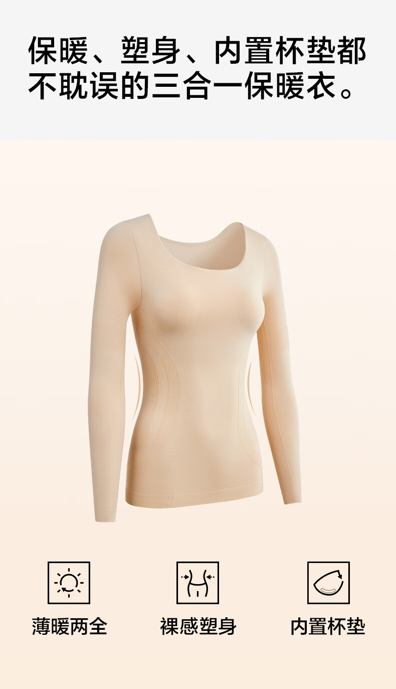 有棵树塑身保暖内衣女修身套装秋冬带胸垫打底衫美体塑型秋衣秋裤 砖红棕 L 【塑身款尺码偏小】