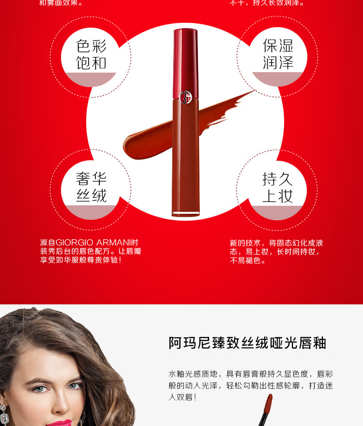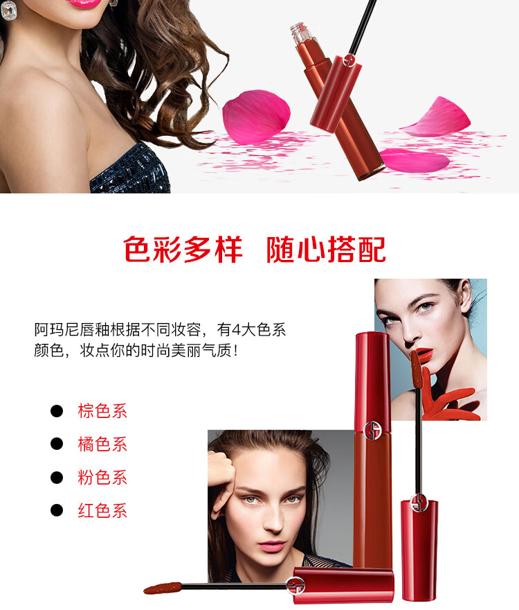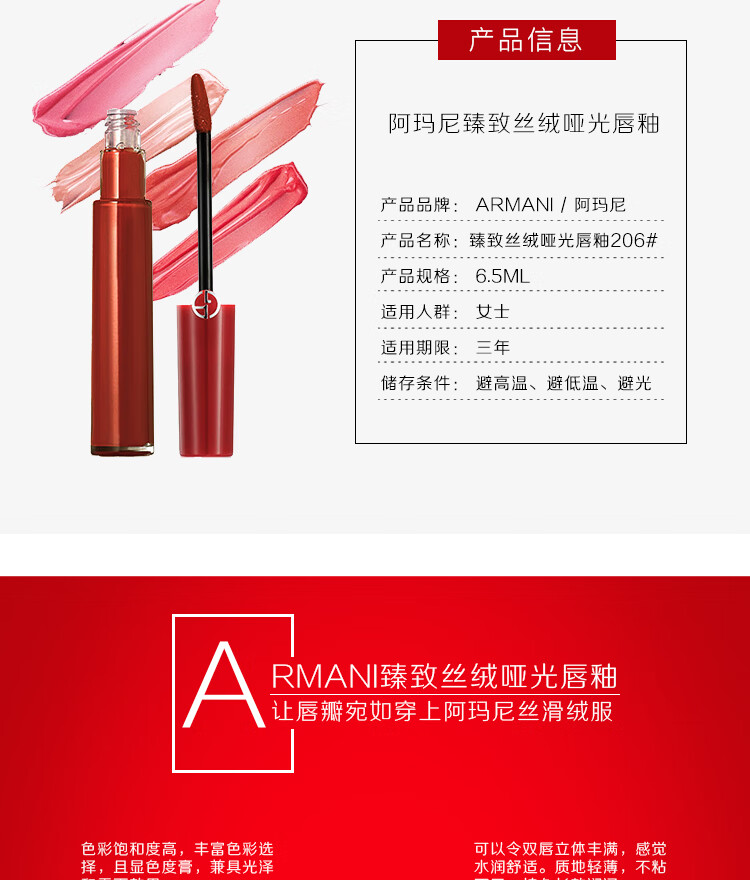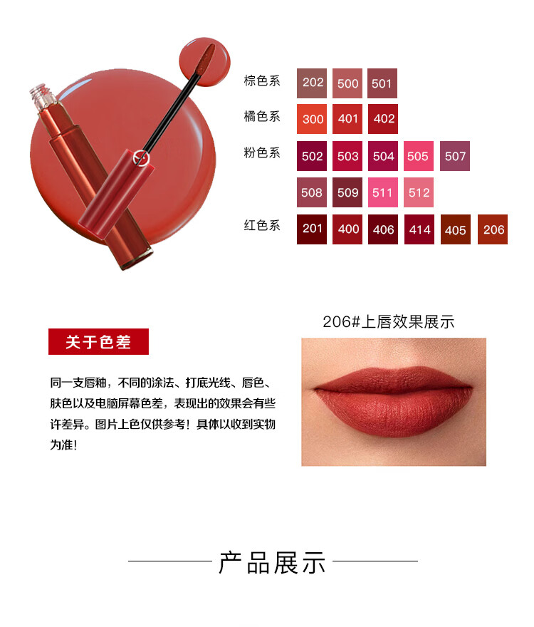 阿玛尼 红管丝绒唇釉 206 6.5ml红棕色送女友礼物