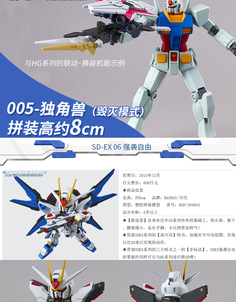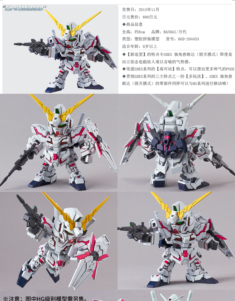 万代(BANDAI) 高达拼装模型 SD EX BB战士 sdex敢达玩具 男孩机器人机甲礼物 SDEX05 独角兽