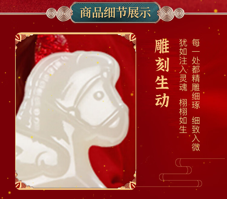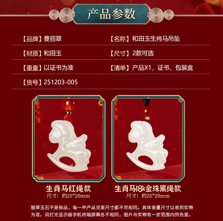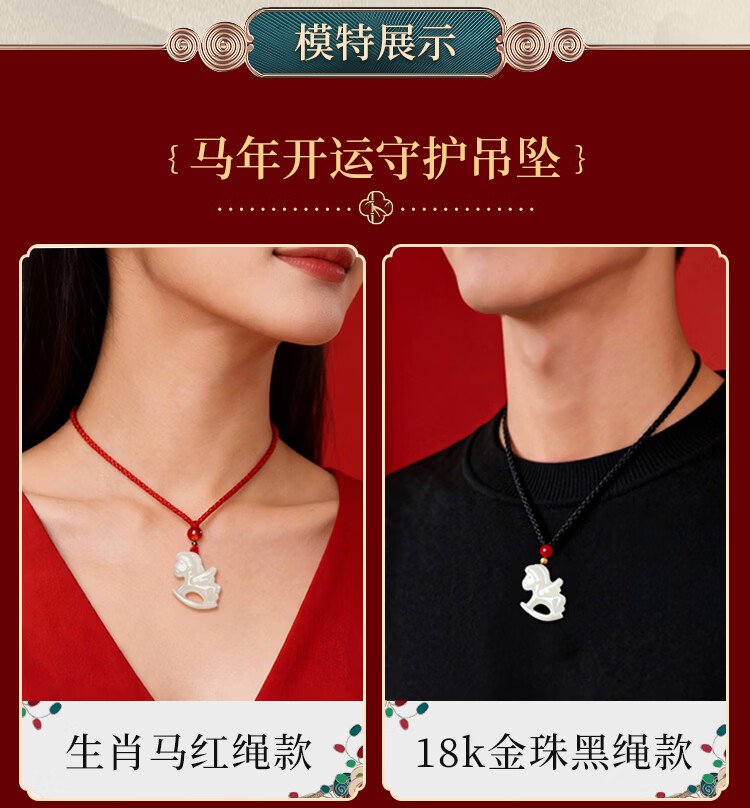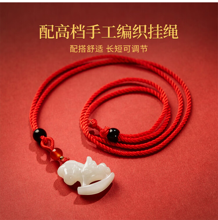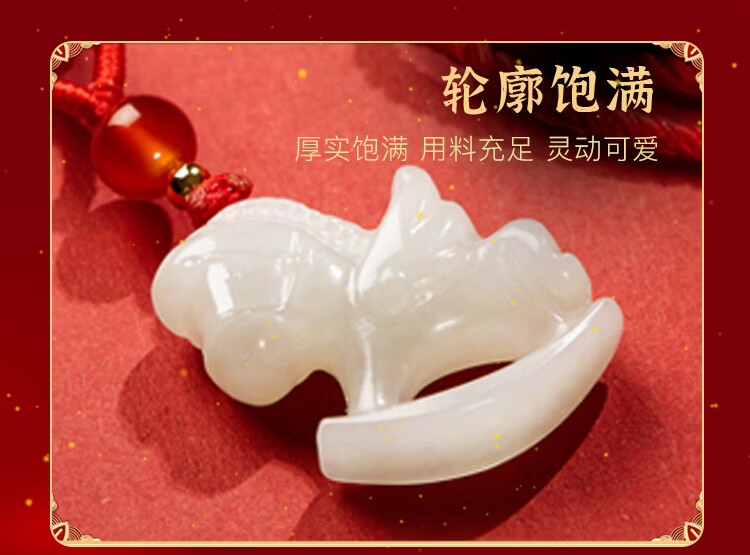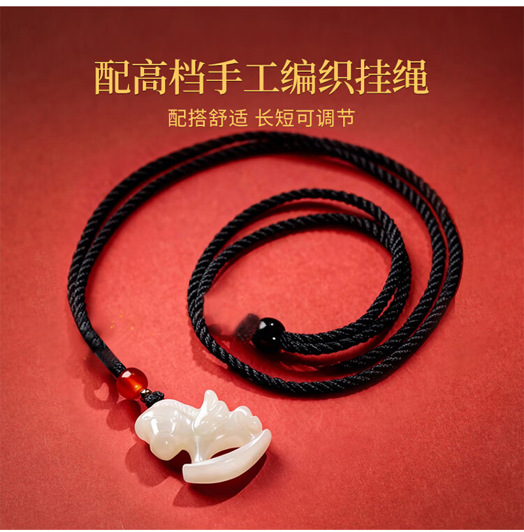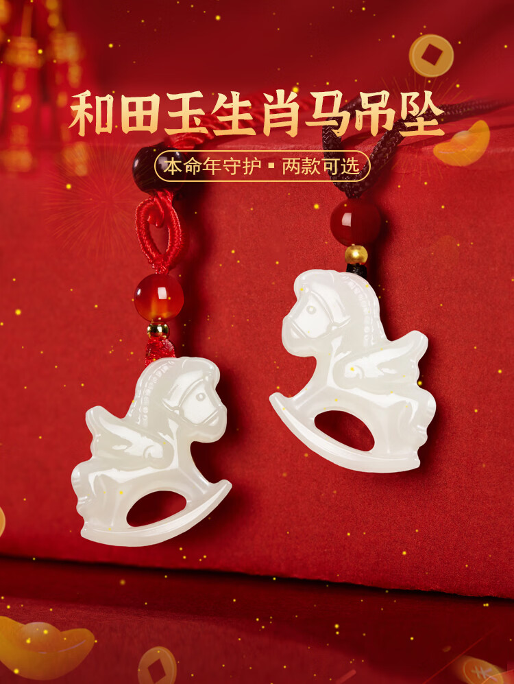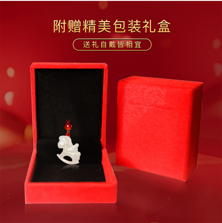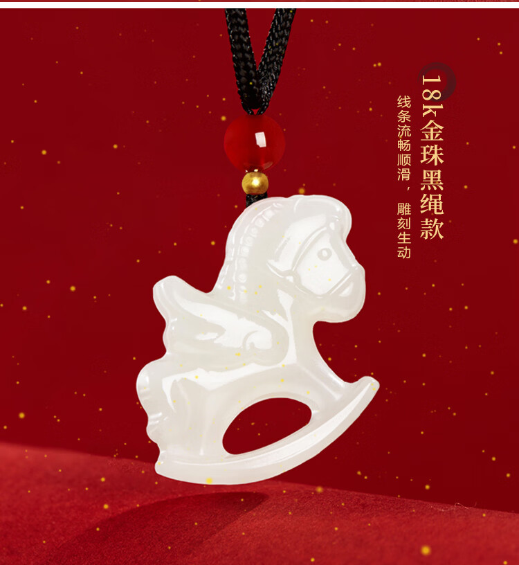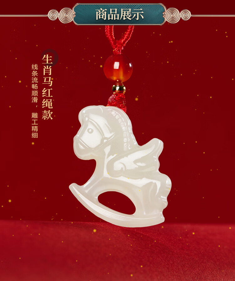 曼丽翠新年礼物和田玉生肖马吊坠骐骥红转运小木马本命年玉坠项链男女款