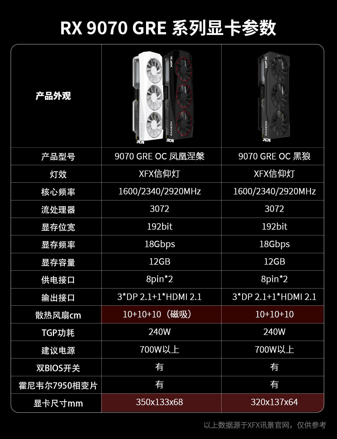 讯景(XFX)AMD RADEON RX 9070 GRE OC 凤凰涅槃 12GB 白色 全新电竞游戏设计智能学习台式电脑独立显卡