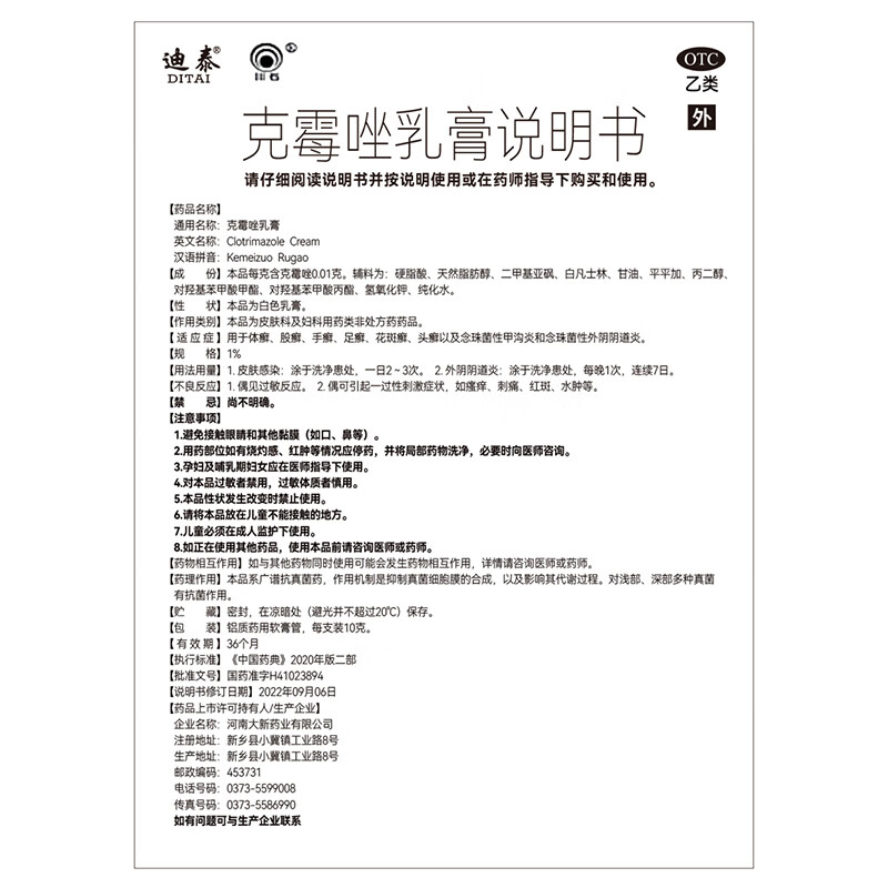 迪泰 克霉唑乳膏10g 外阴瘙痒霉菌性阴道炎妇科专用私处止痒真菌感染男性龟头炎药膏非复方克霉唑克霉挫软膏