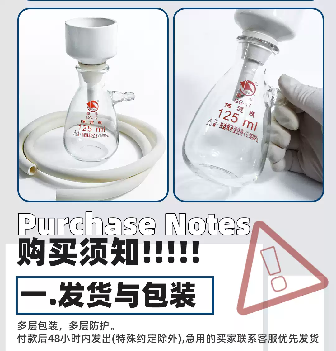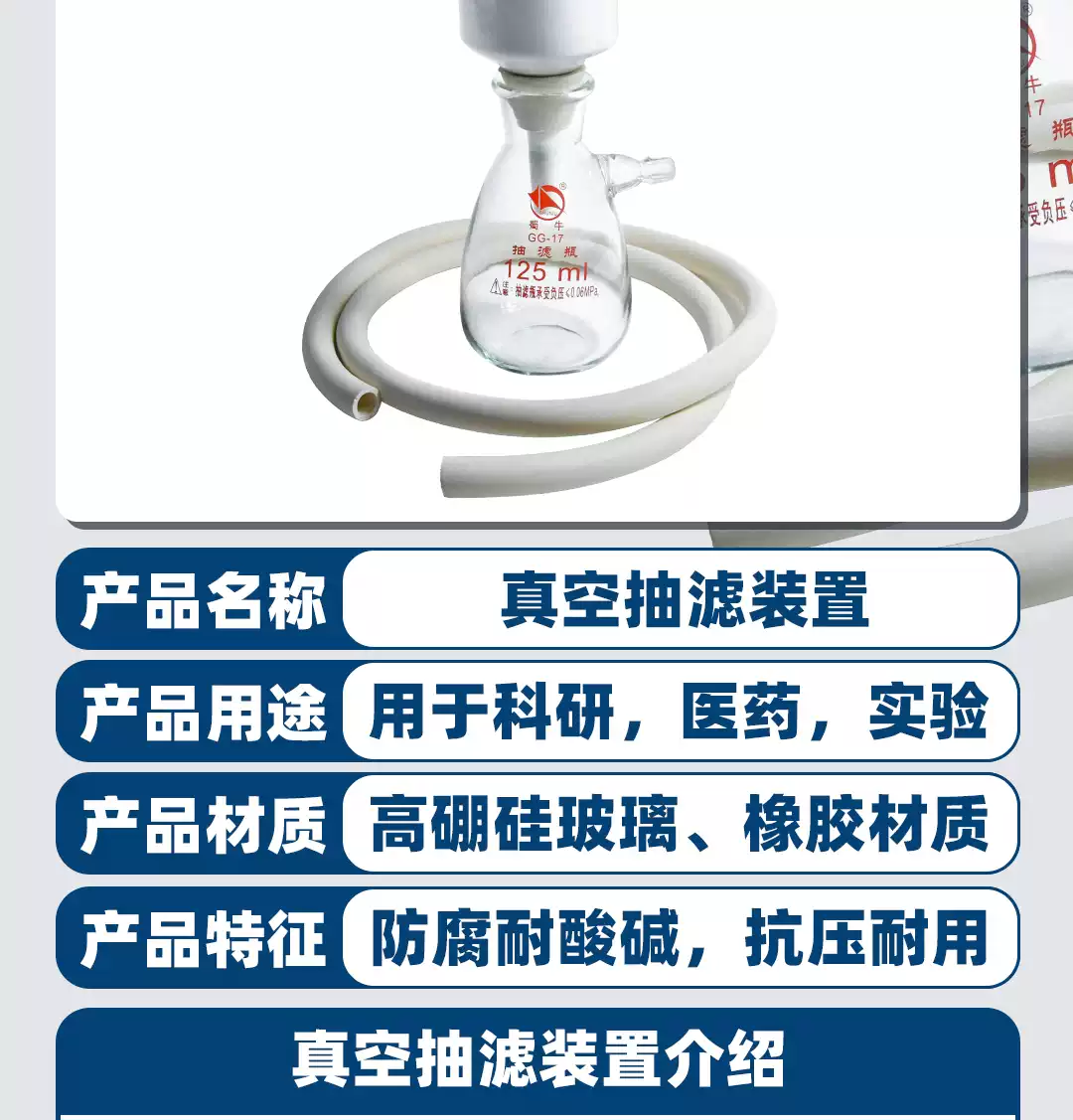 实验室布氏漏斗真空抽滤装置12525050010002500500010000ml 125ml瓶/60mm瓷漏斗/胶管/
