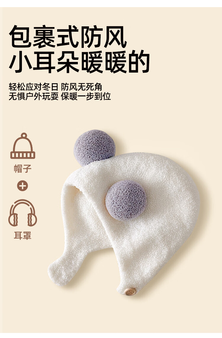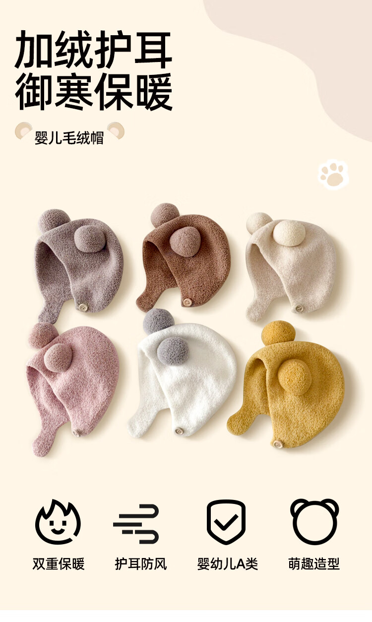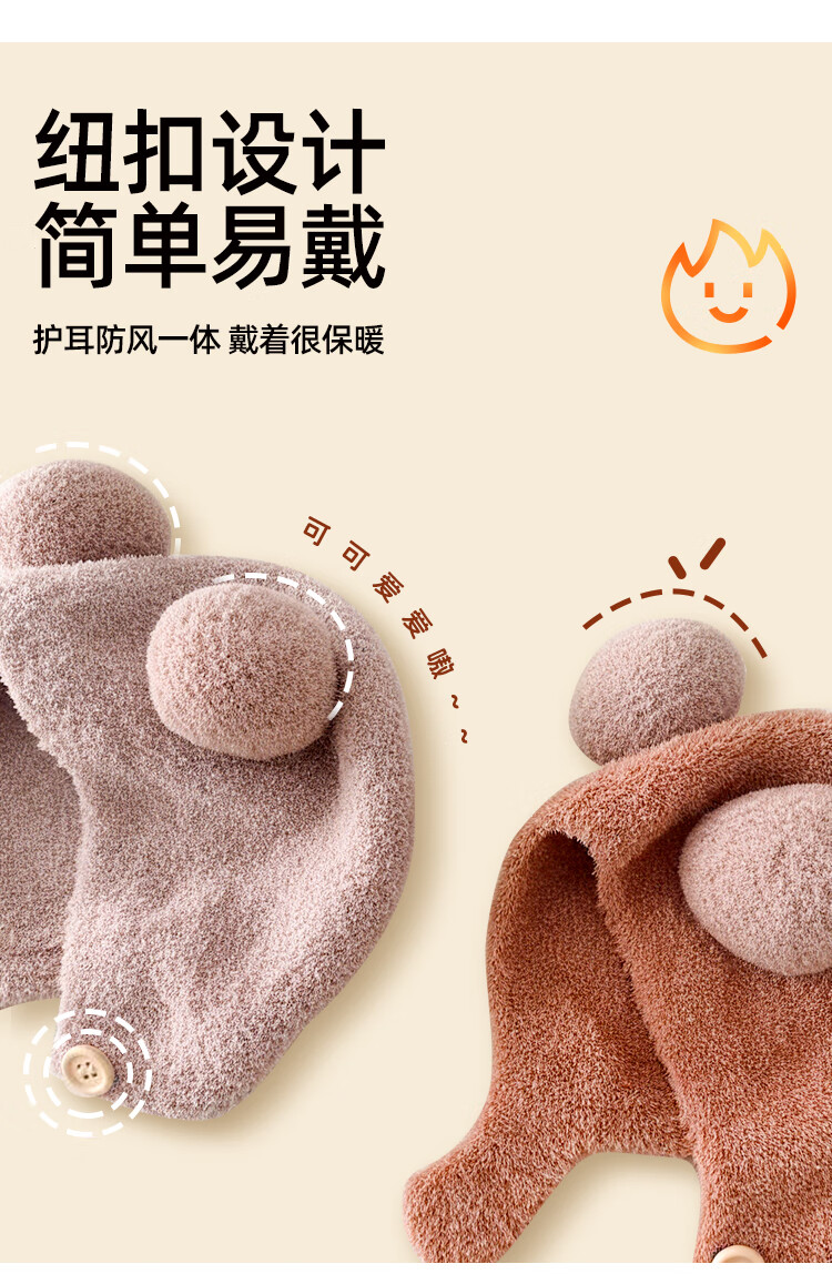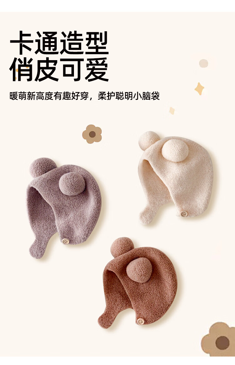 婧麒(JOYNCLEON)婴儿帽子秋冬新生婴幼儿护耳帽保暖男女宝宝针织毛绒帽 Jyf189953