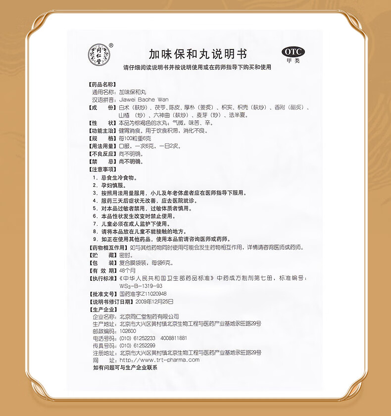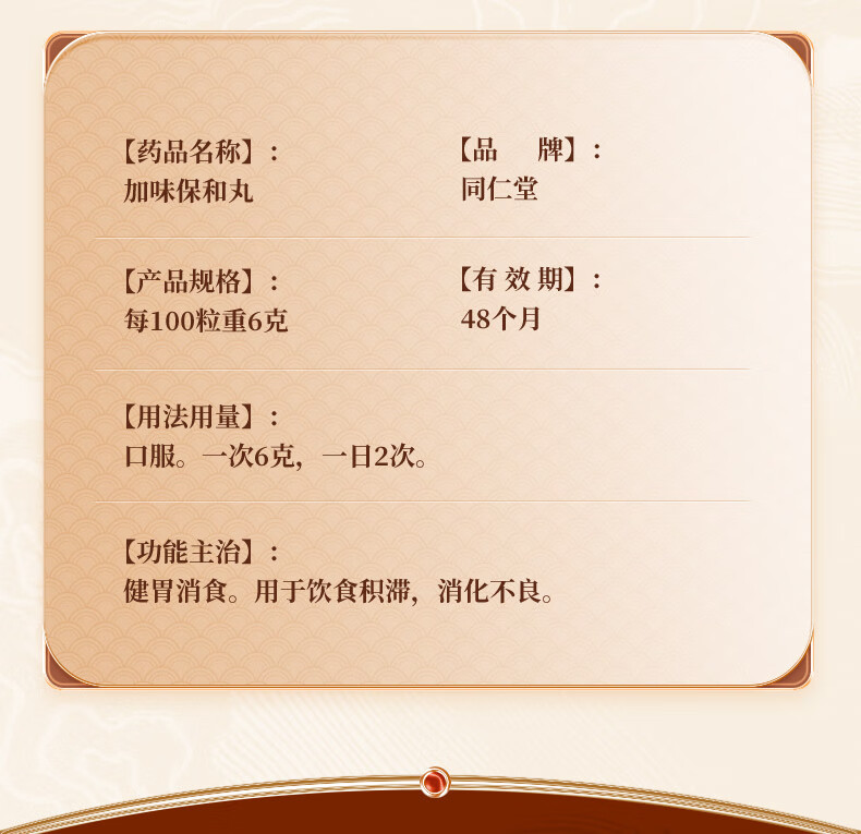 北京同仁堂 加味保和丸6g*12袋 健胃消食 用于饮食积滞 消化不良