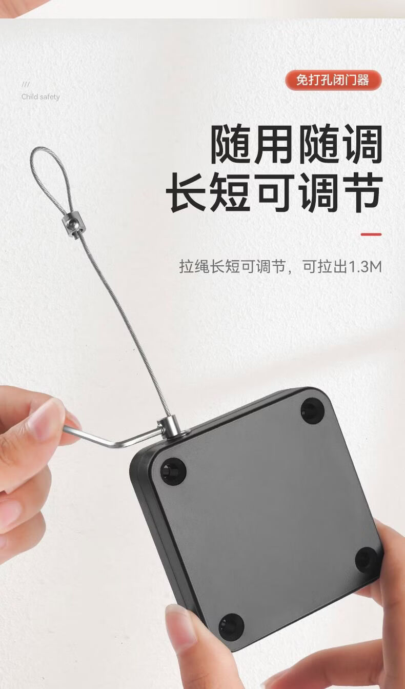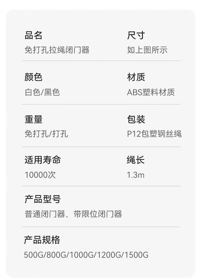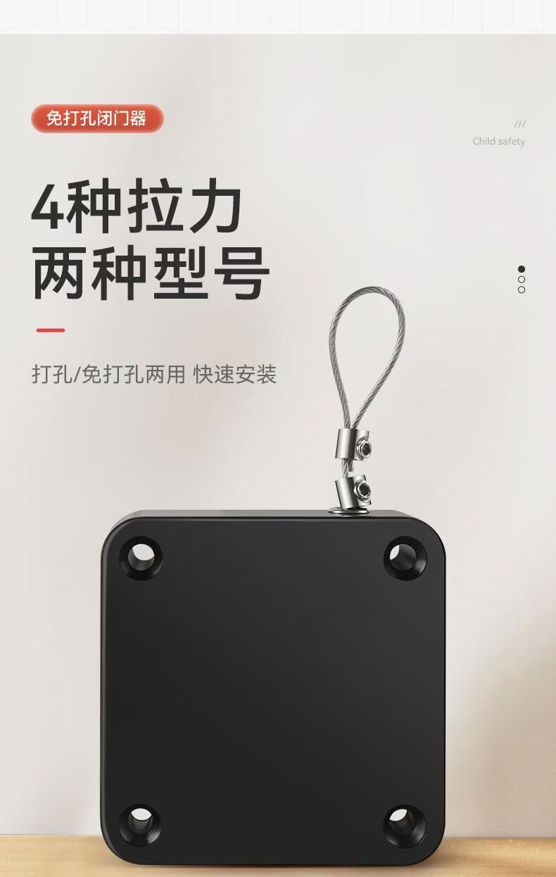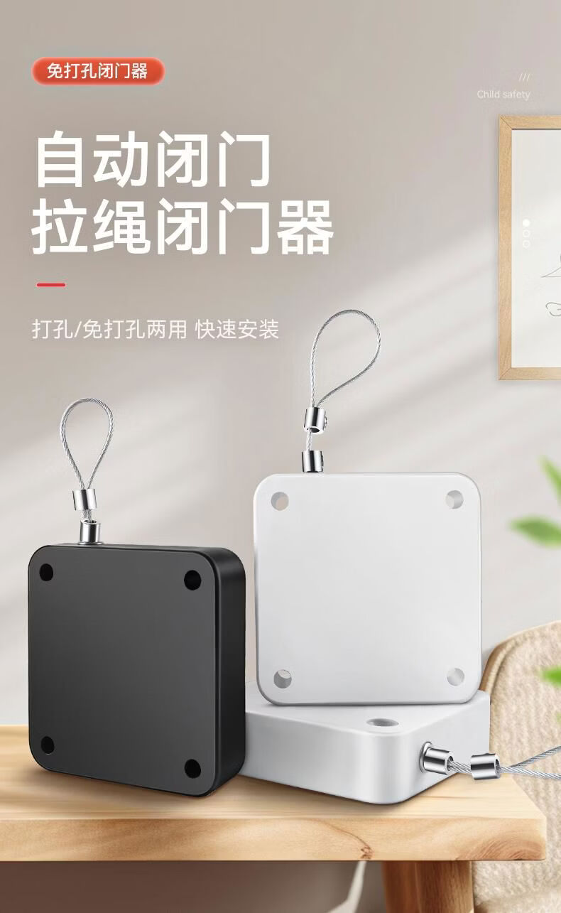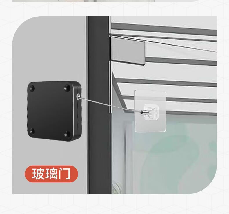 接运猫免打孔自动家用静音缓冲闭门器简易关门拉绳闭合推拉木门弹簧 免打孔-黑色500拉力自动两用