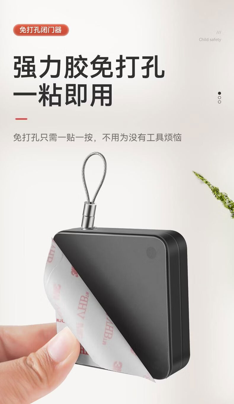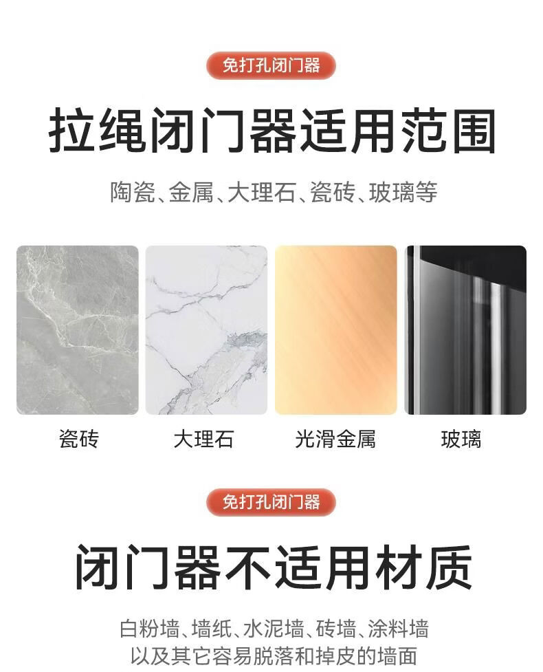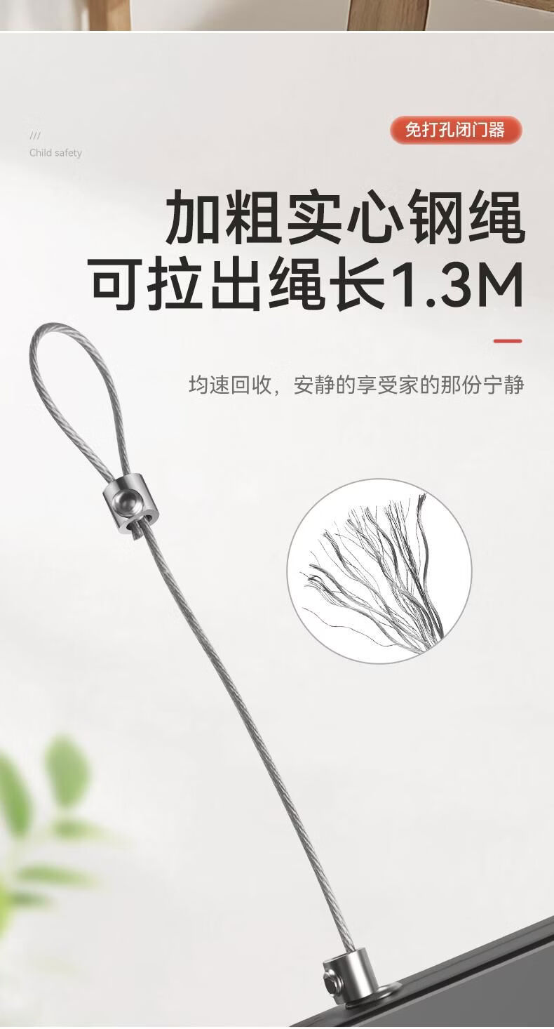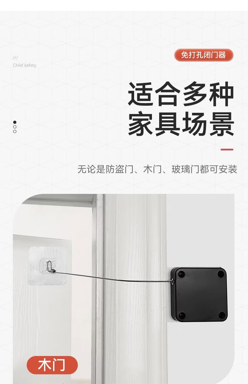 接运猫免打孔自动家用静音缓冲闭门器简易关门拉绳闭合推拉木门弹簧 免打孔-黑色500拉力自动两用