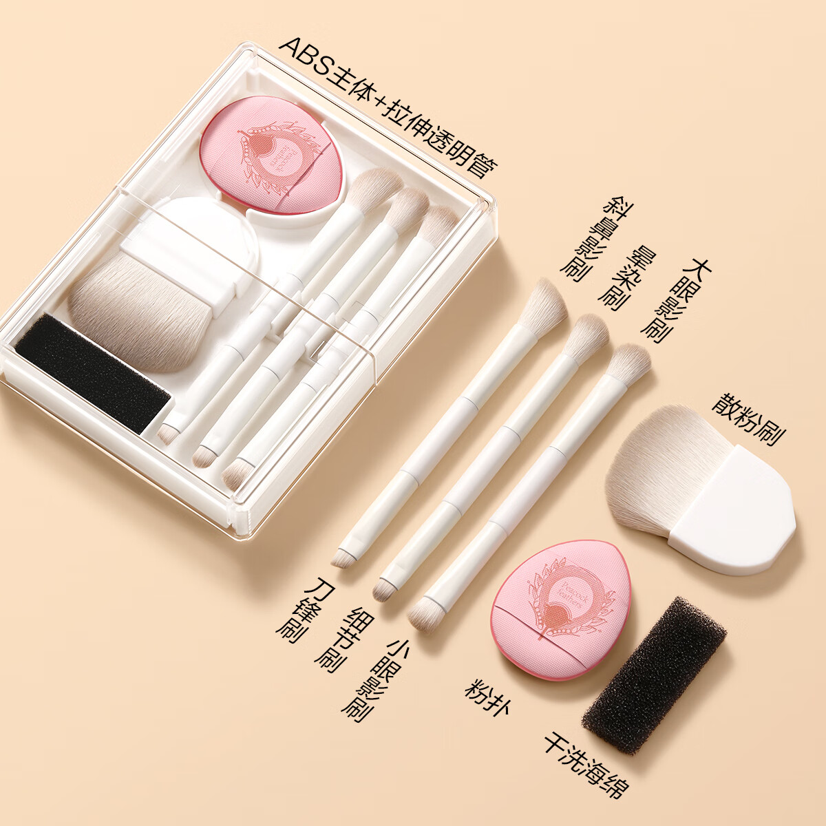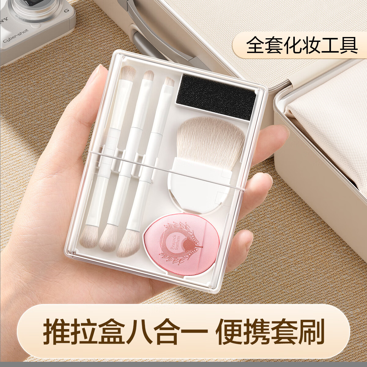 欧亿姿化妆刷散粉刷云瓷推拉盒套装小巧便携脸部定妆柔软不扎脸8合1