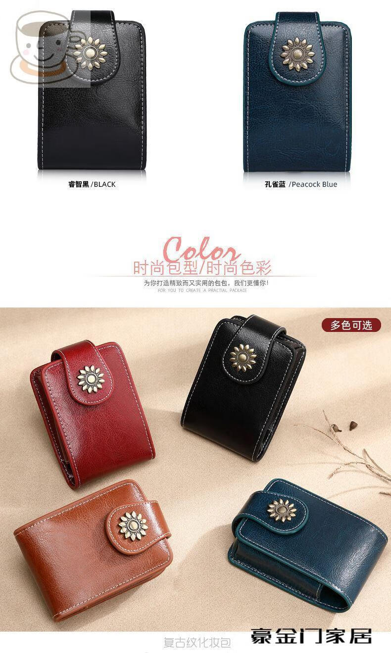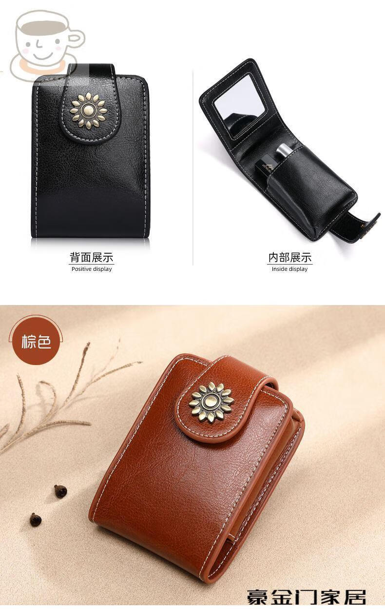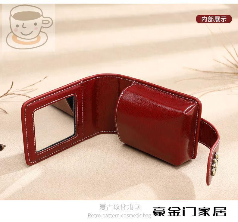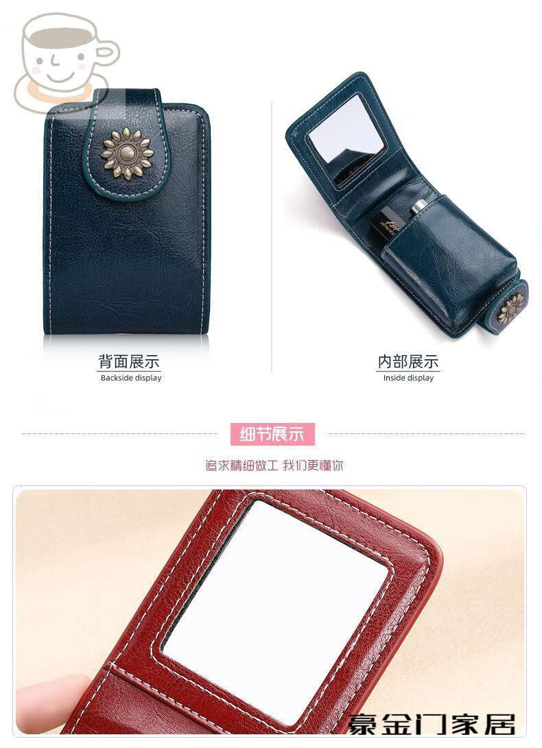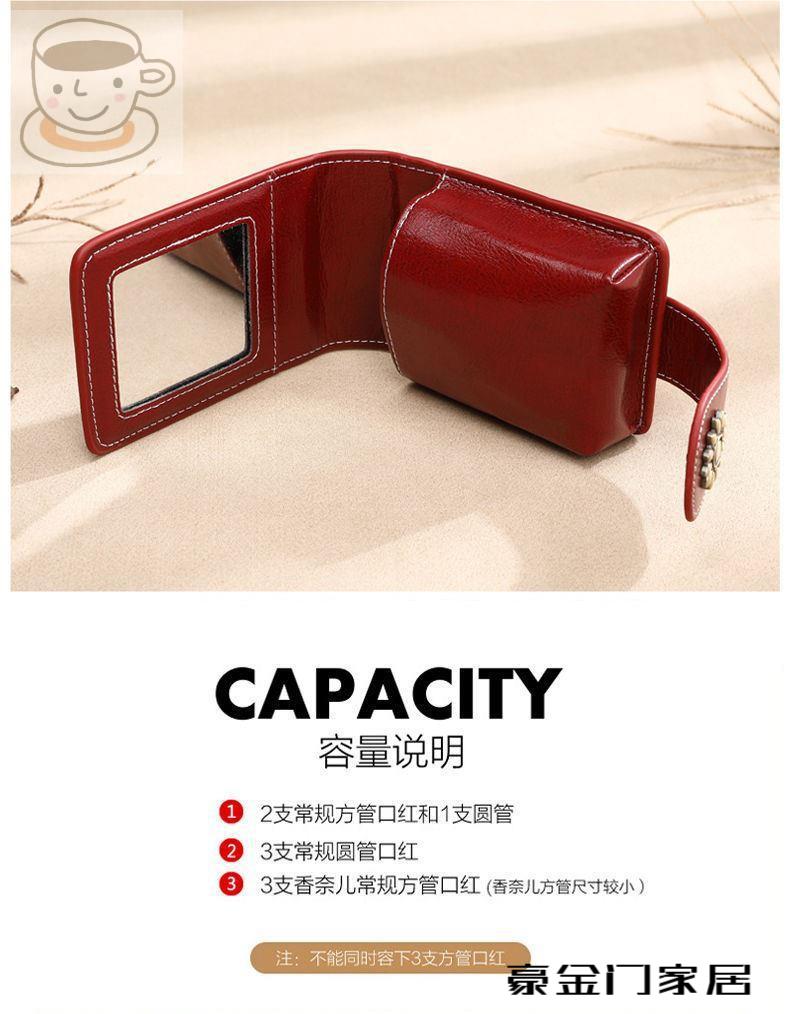 口红盒收纳盒携带 口红收纳盒随身带感女小号便携带镜子皮质的 A24-升级版.-孔雀蓝.