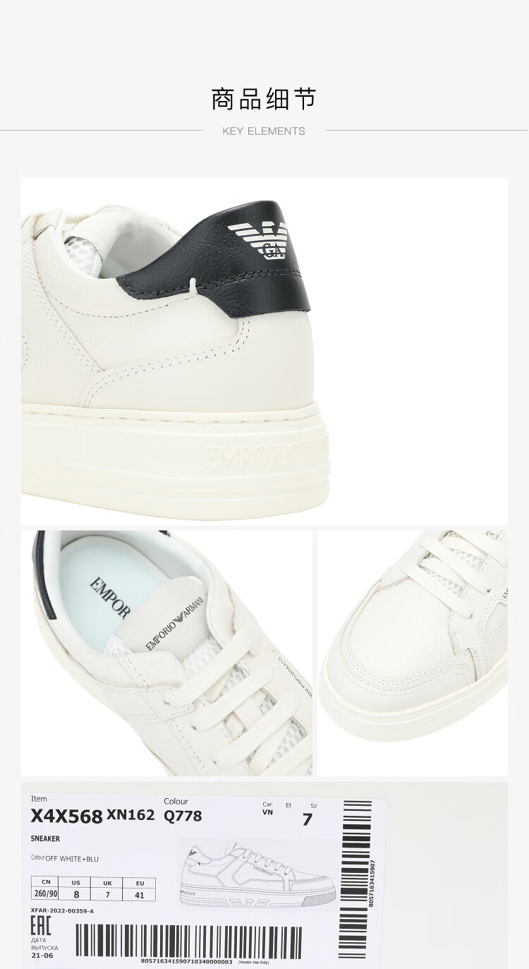 ARMANI 阿玛尼 男士徽标撞色牛皮休闲运动鞋板鞋新年礼物 黑色 X4X568 XN162 U066 39