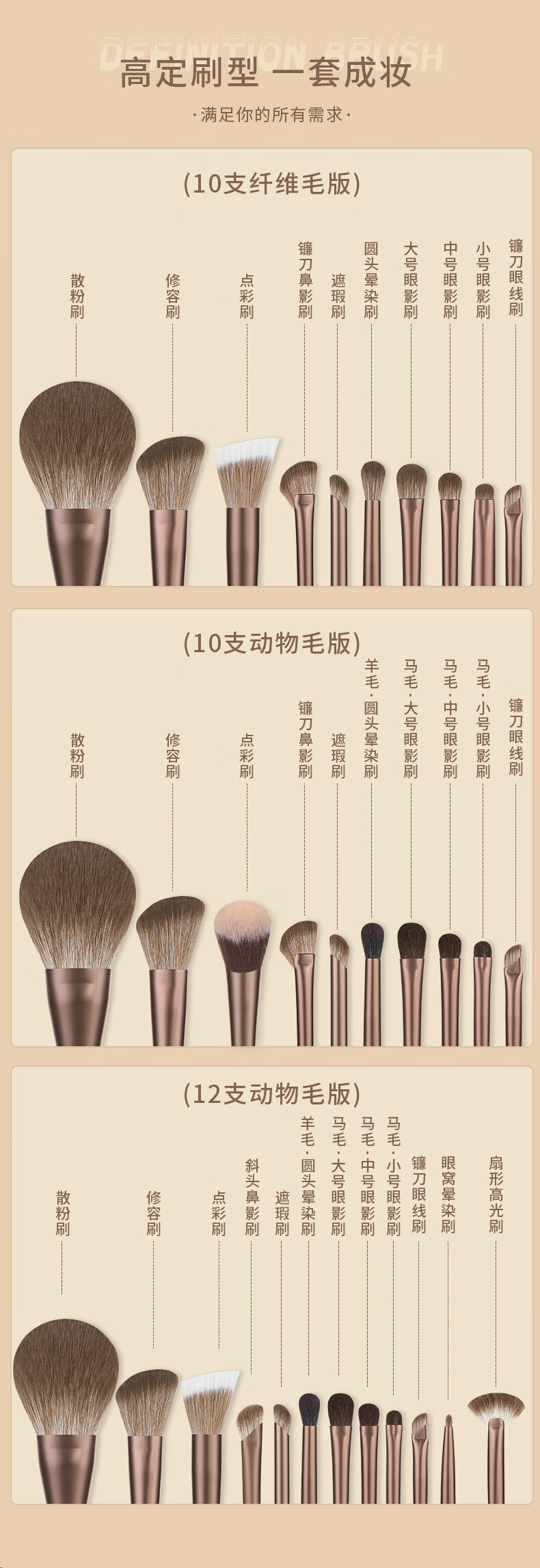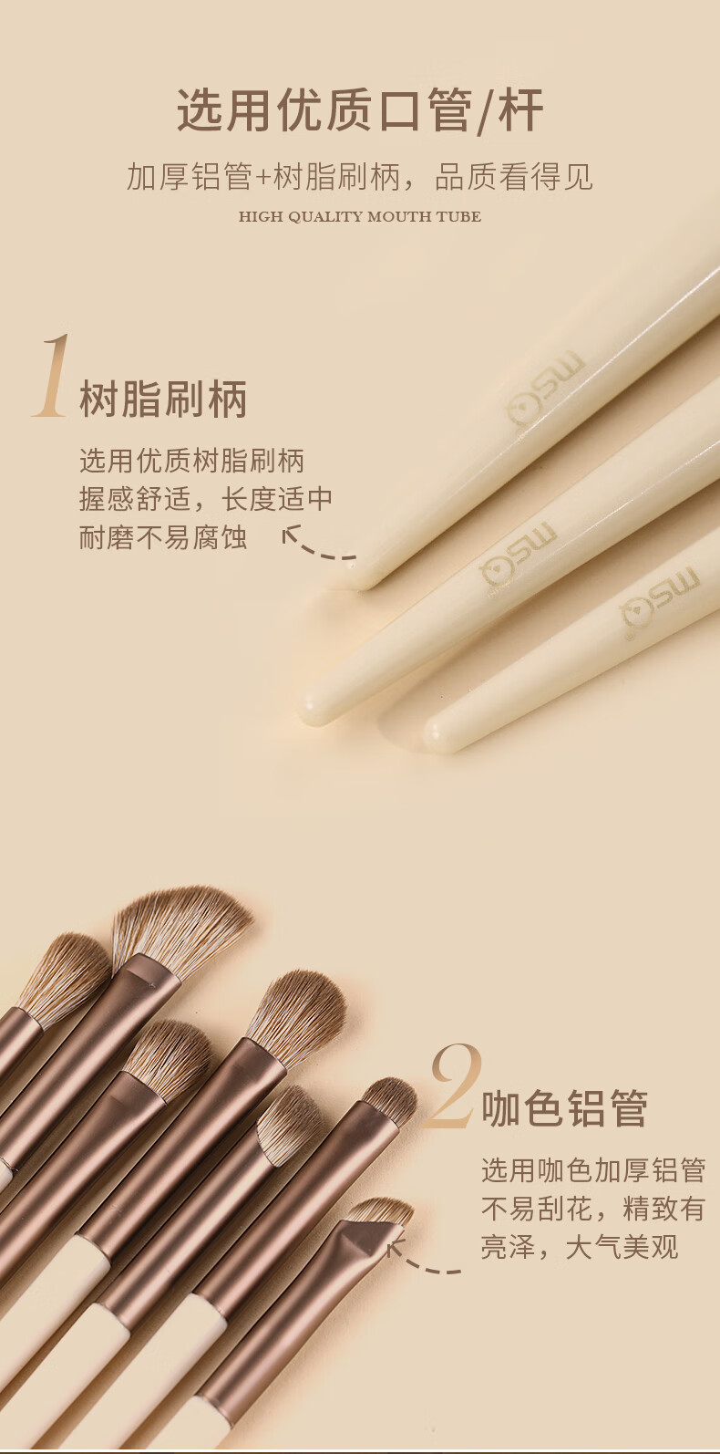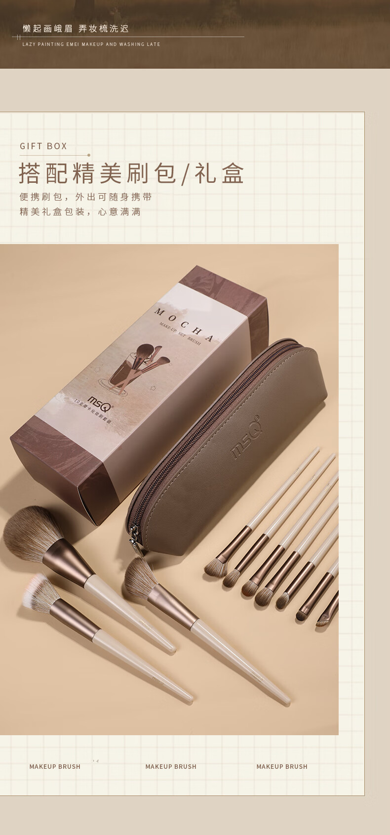 魅丝蔻(MSQ)12支摩卡化妆刷套装动物毛散粉刷腮红刷修容鼻影刷眼影刷美妆工具