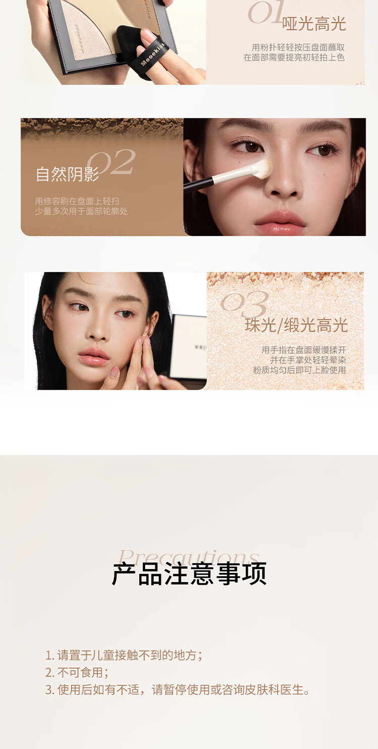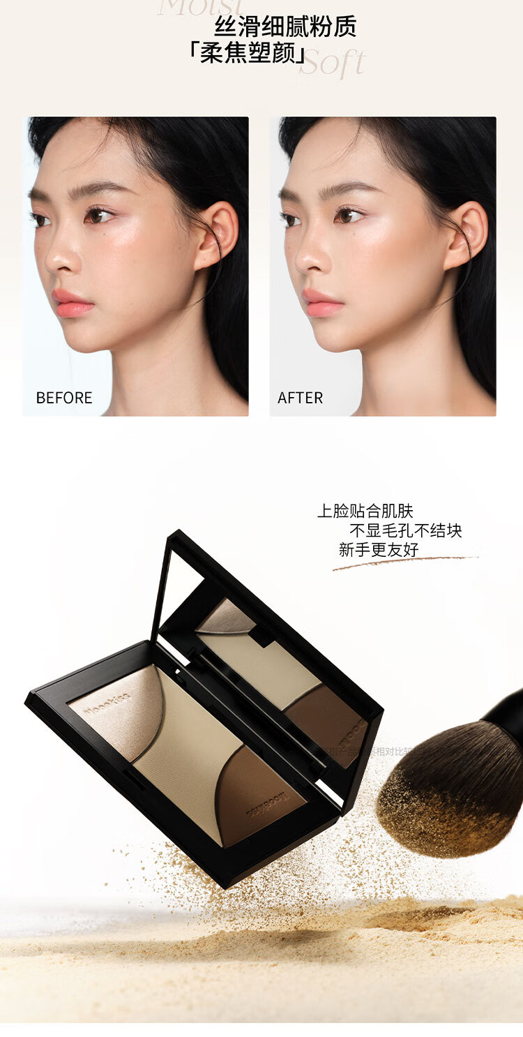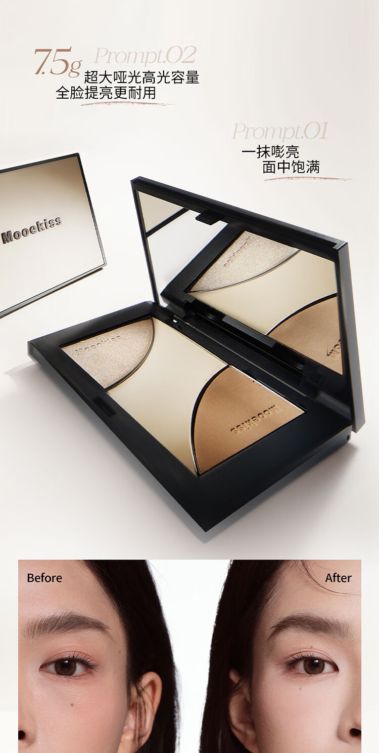 Mooekiss粉饼高光修容一体三合一盘遮瑕阴影鼻影哑光修容盘新年专用9g01
