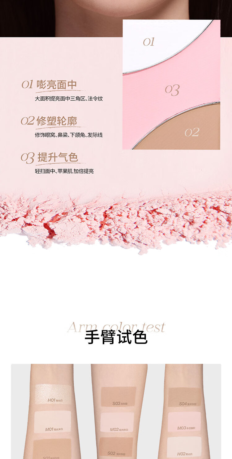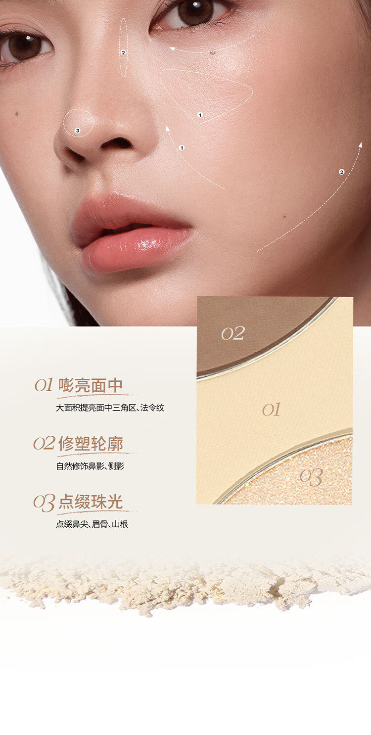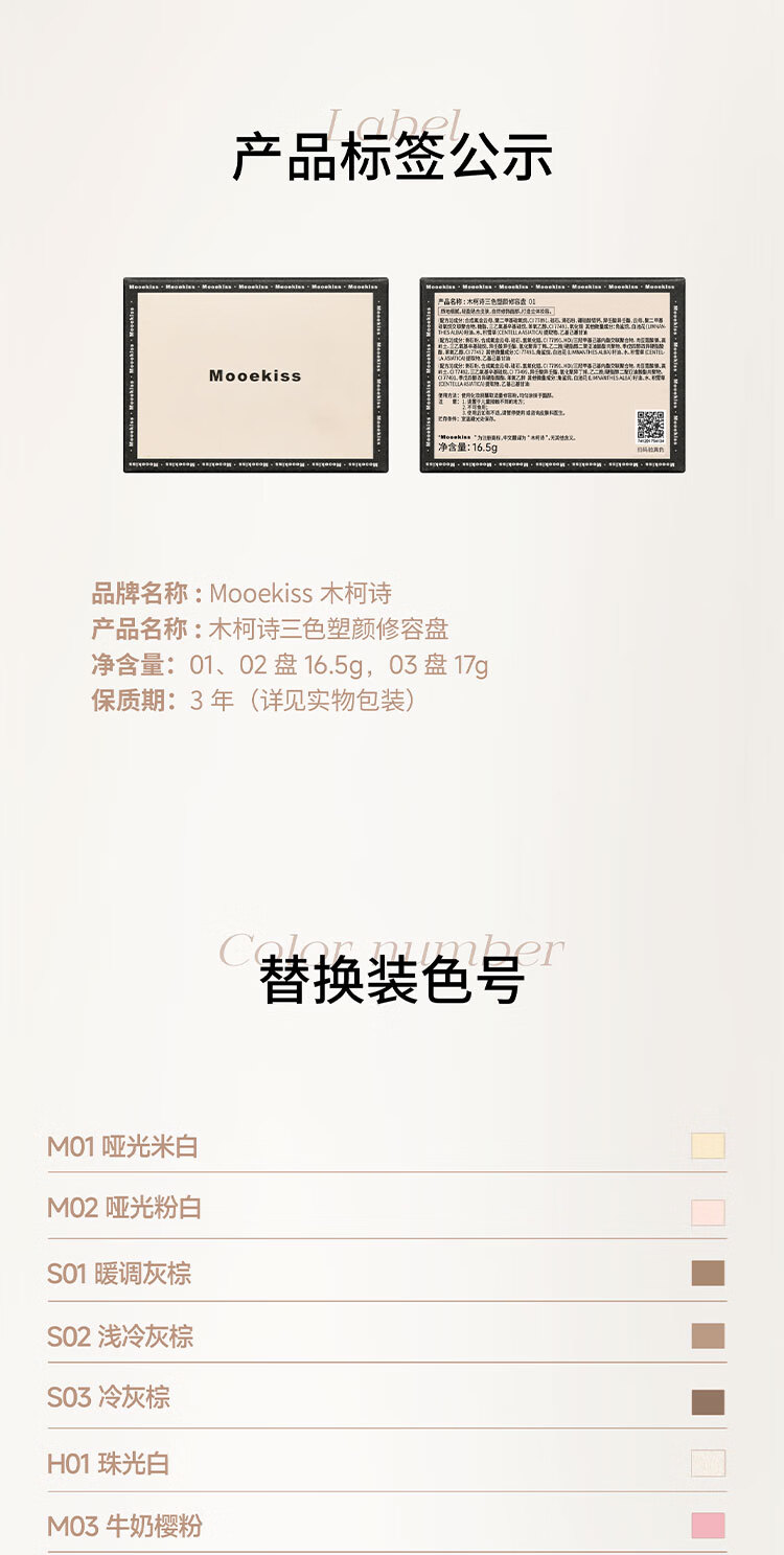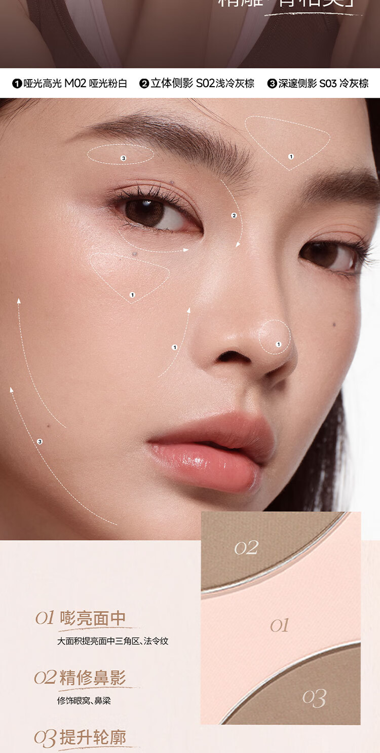 Mooekiss粉饼高光修容一体三合一盘遮瑕阴影鼻影哑光修容盘新年专用9g01