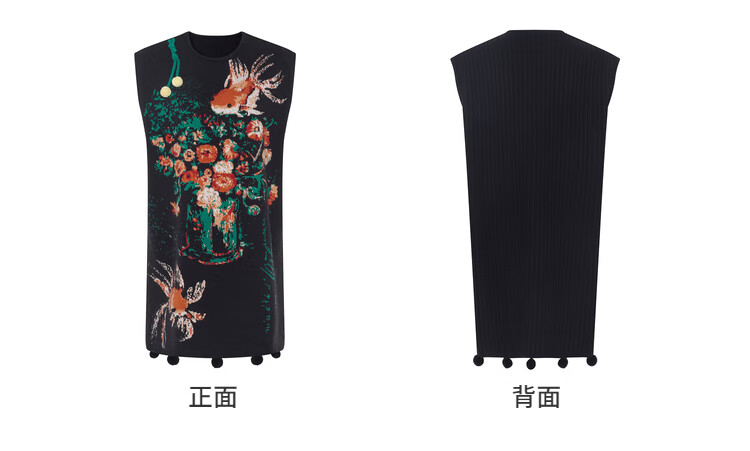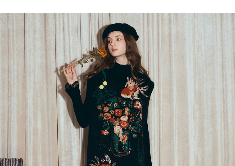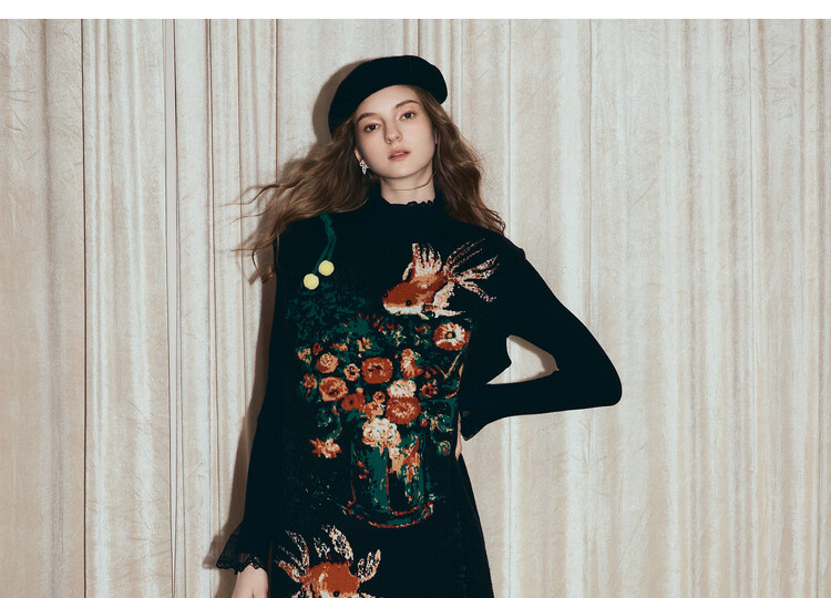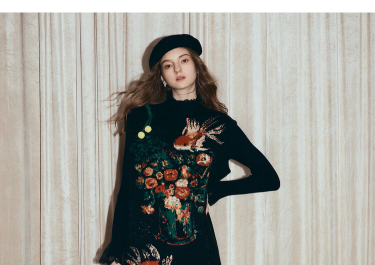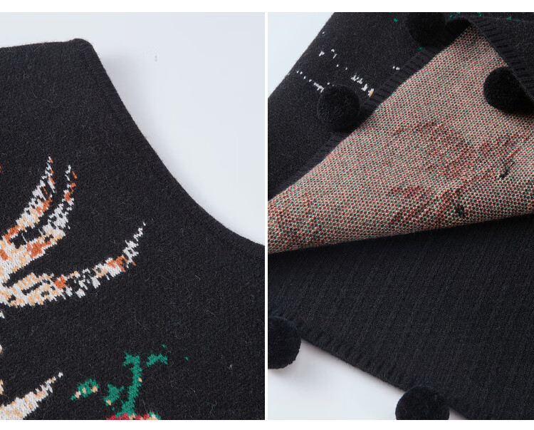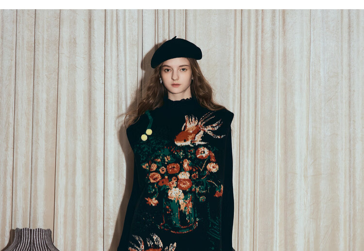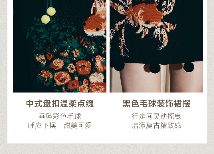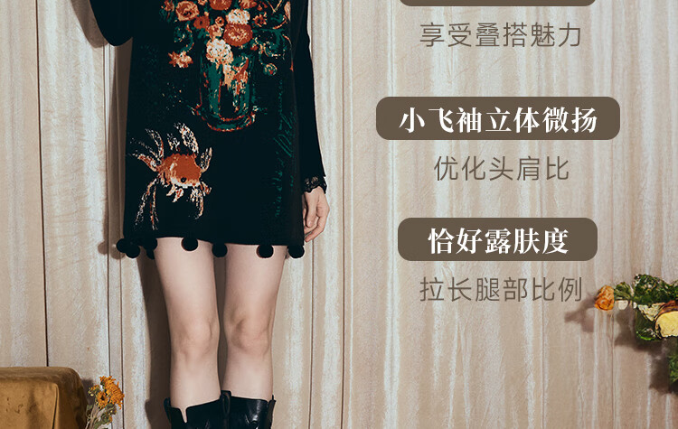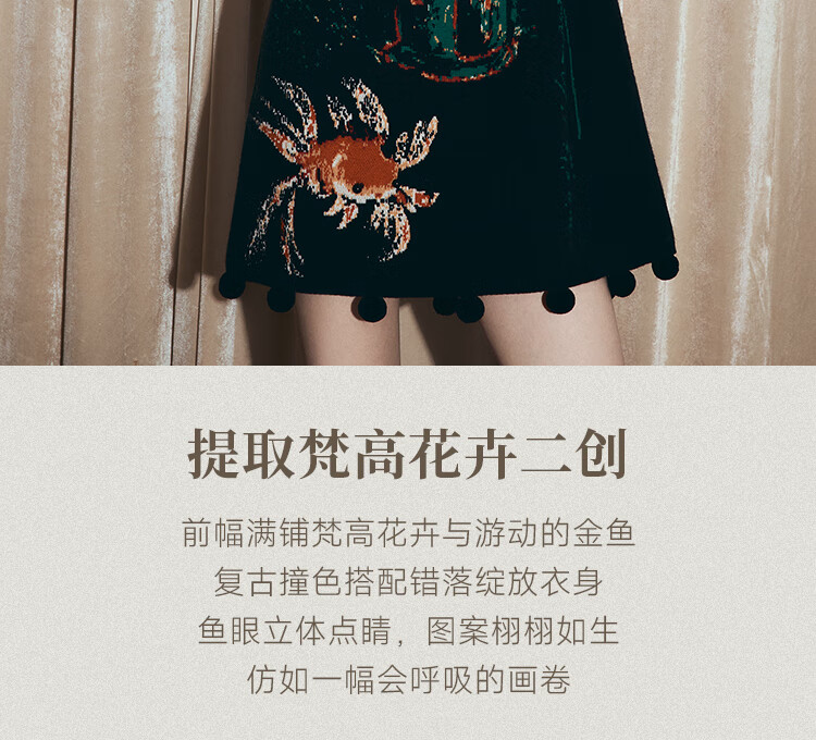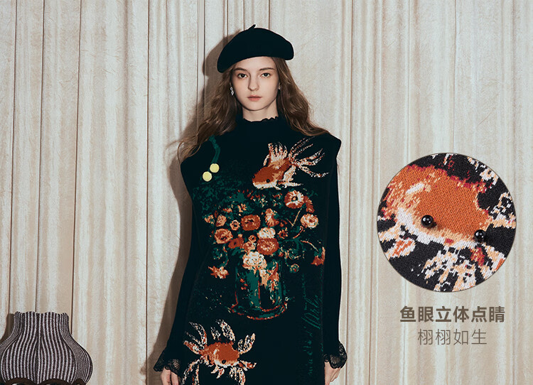 两三事梵高文艺西西里午后2026冬新款金鱼图案毛球摆背心裙连衣裙 黑色-y L