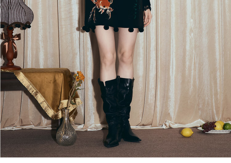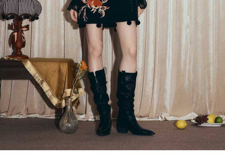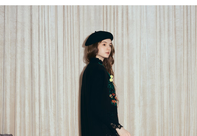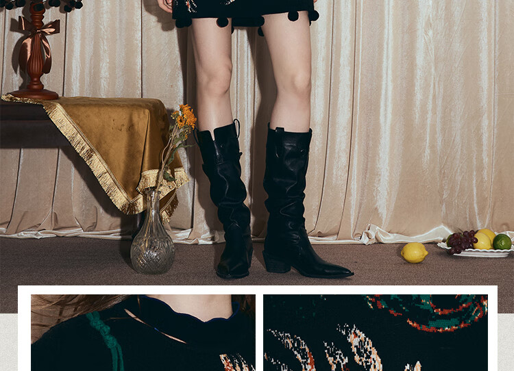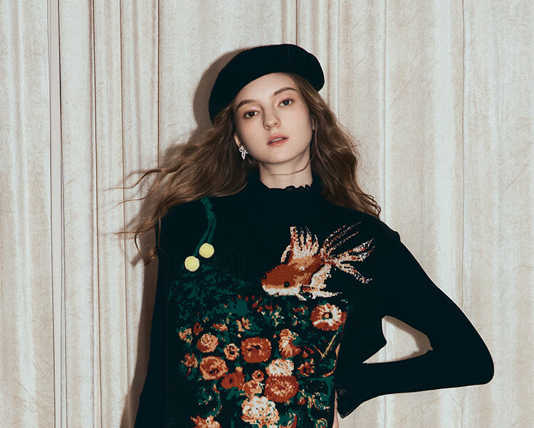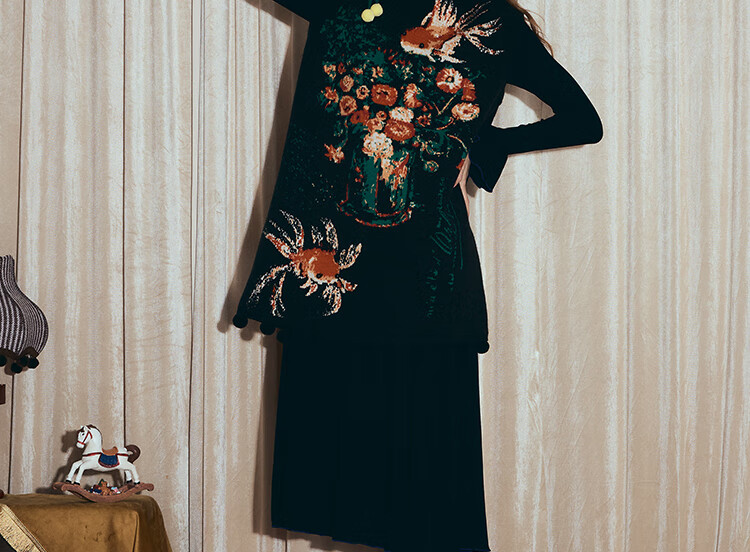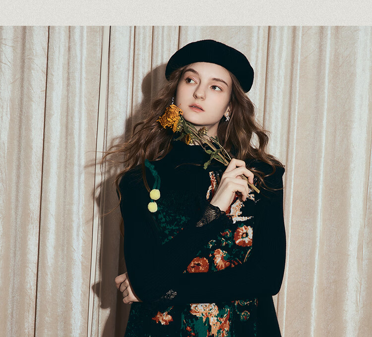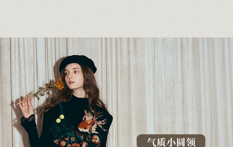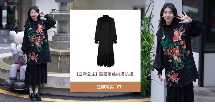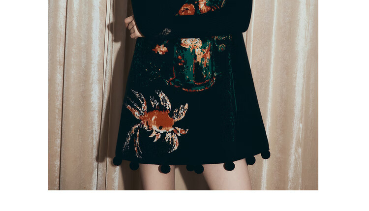 两三事梵高文艺西西里午后2026冬新款金鱼图案毛球摆背心裙连衣裙 黑色-y L