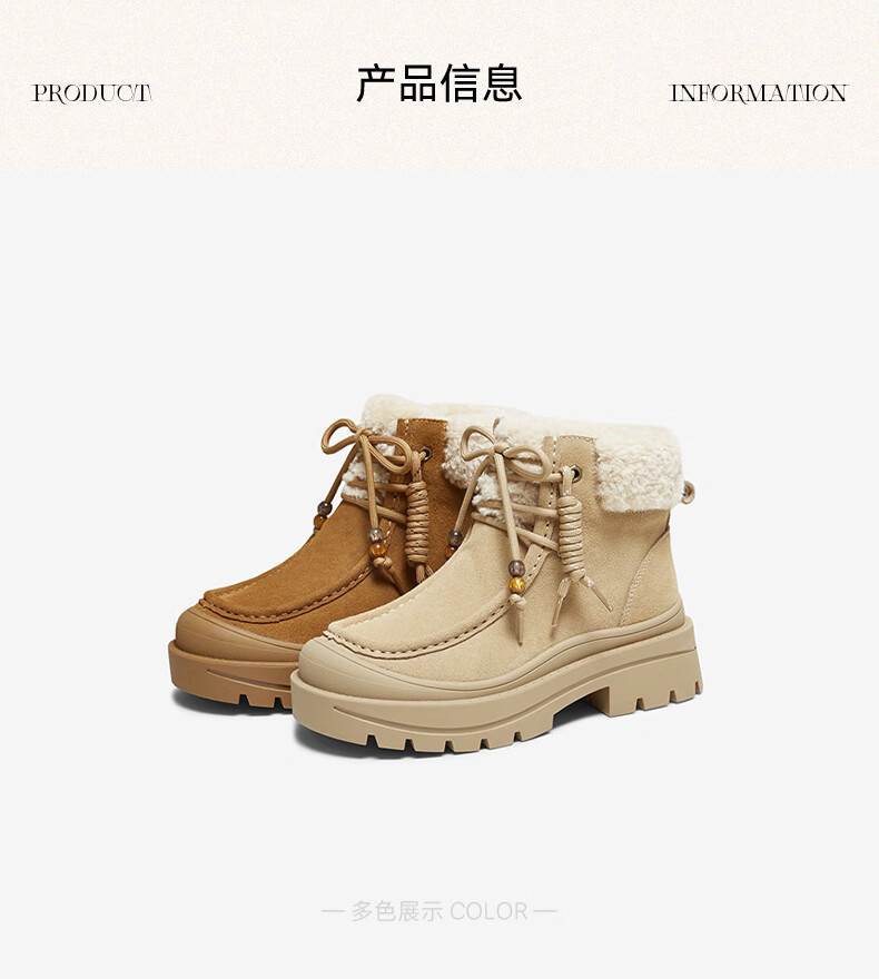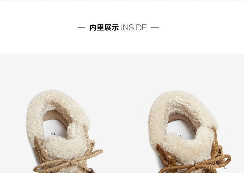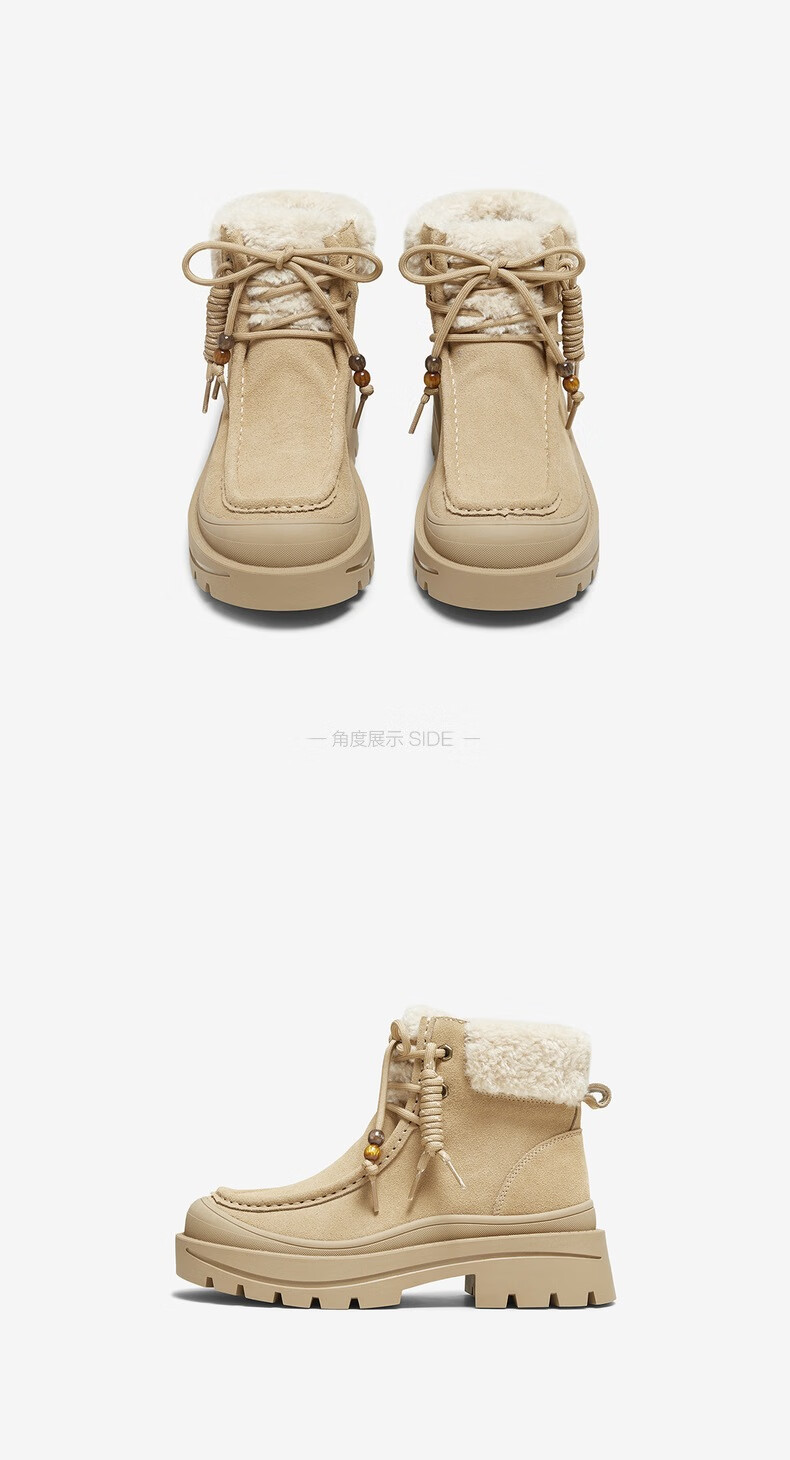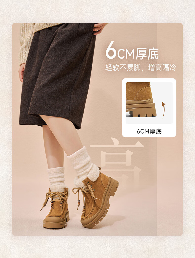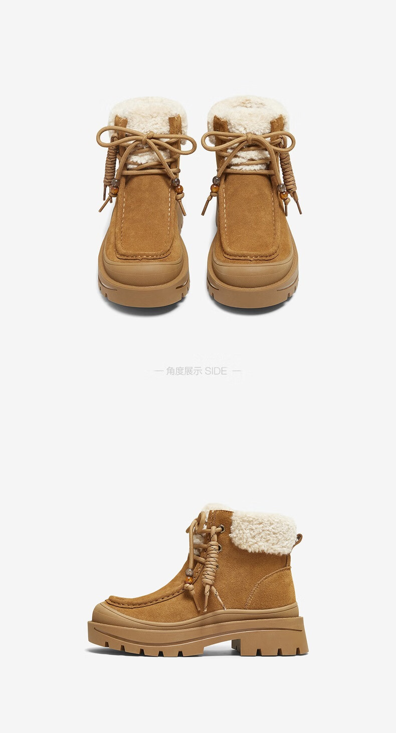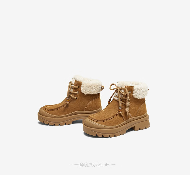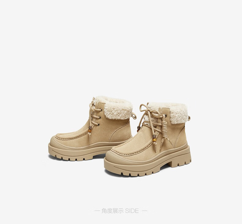 百思图2025冬季新款休闲靴时尚户外休闲运动女短靴DK819DD5 驼色/杏色 37