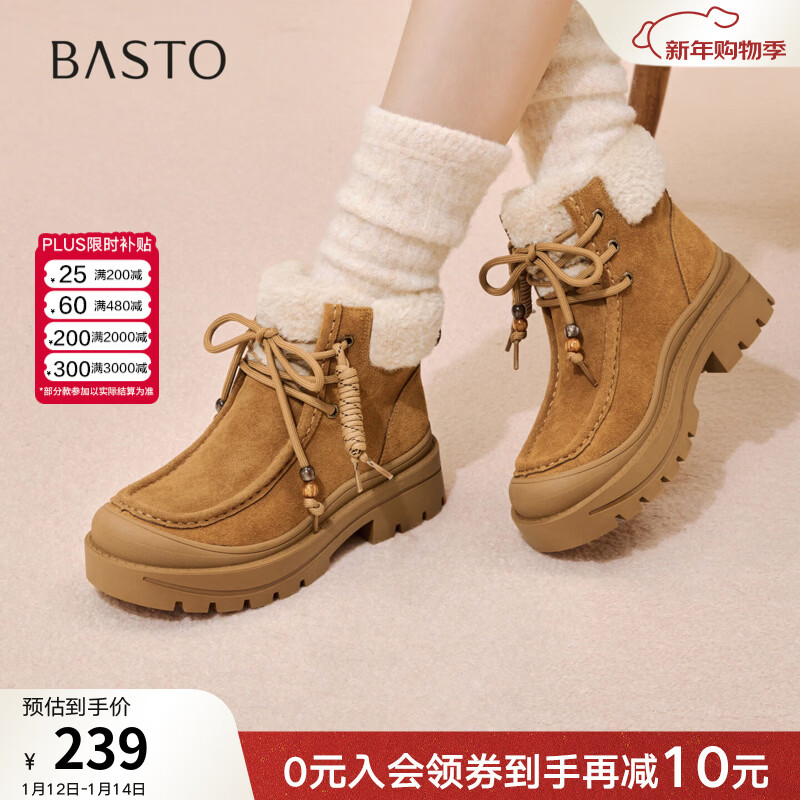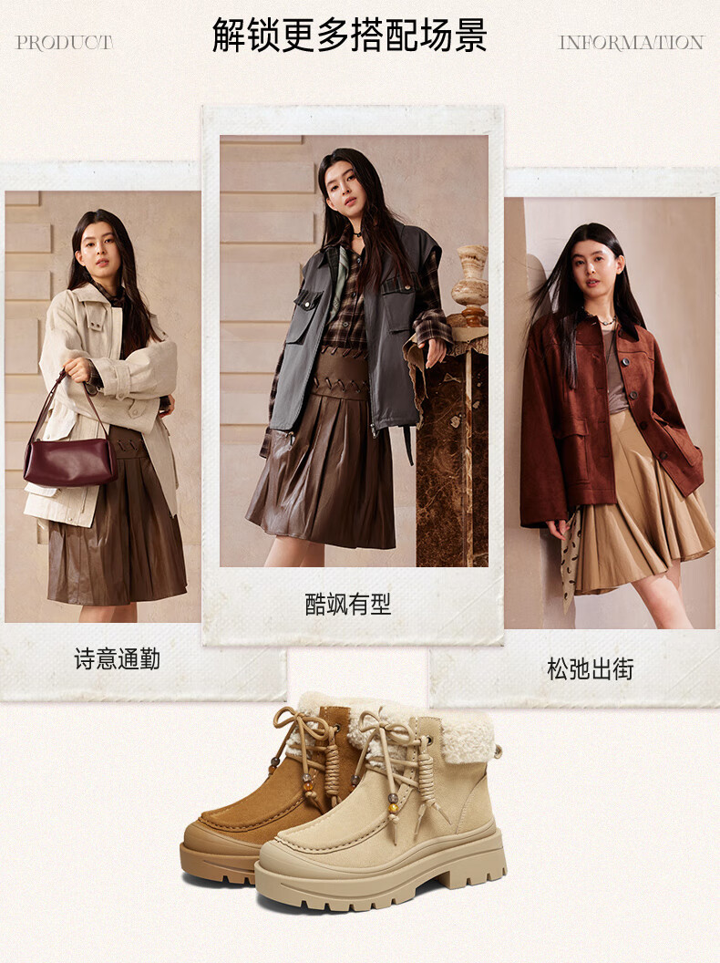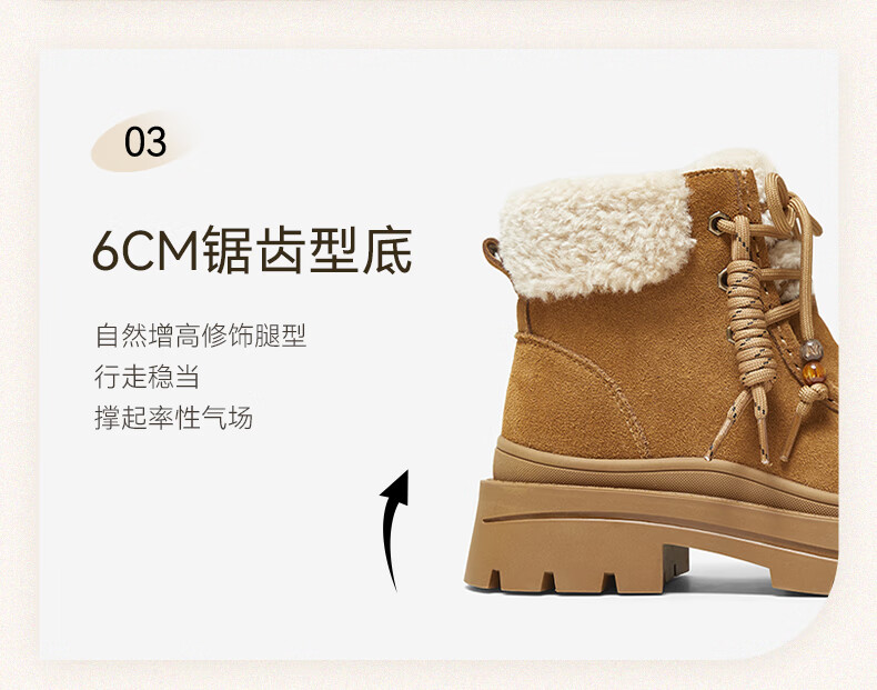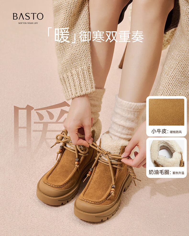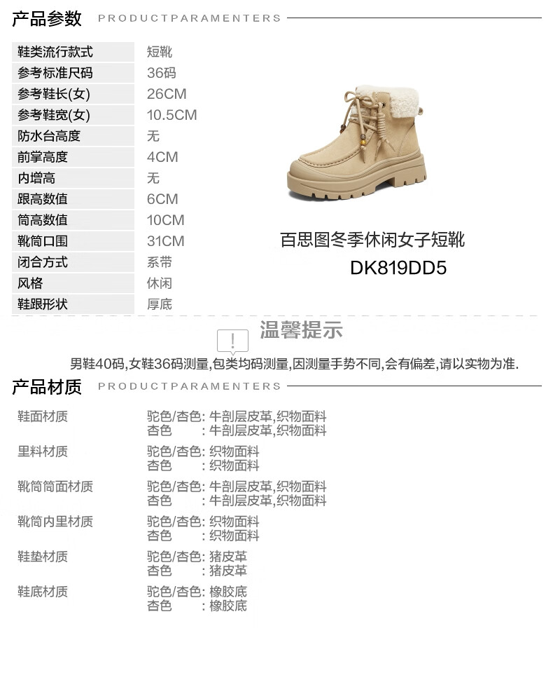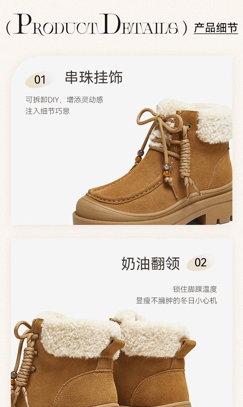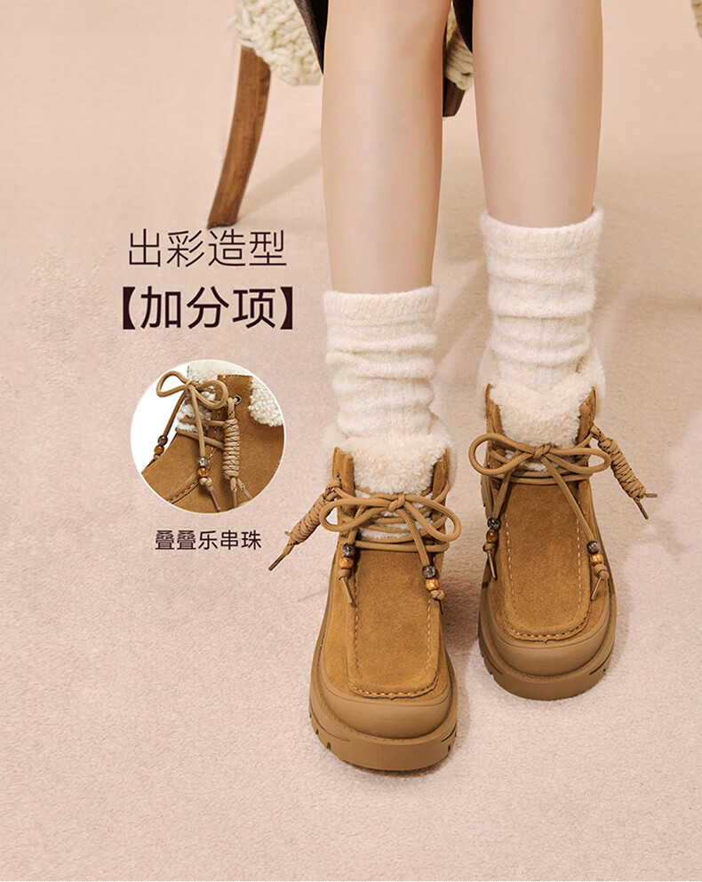 百思图2025冬季新款休闲靴时尚户外休闲运动女短靴DK819DD5 驼色/杏色 37